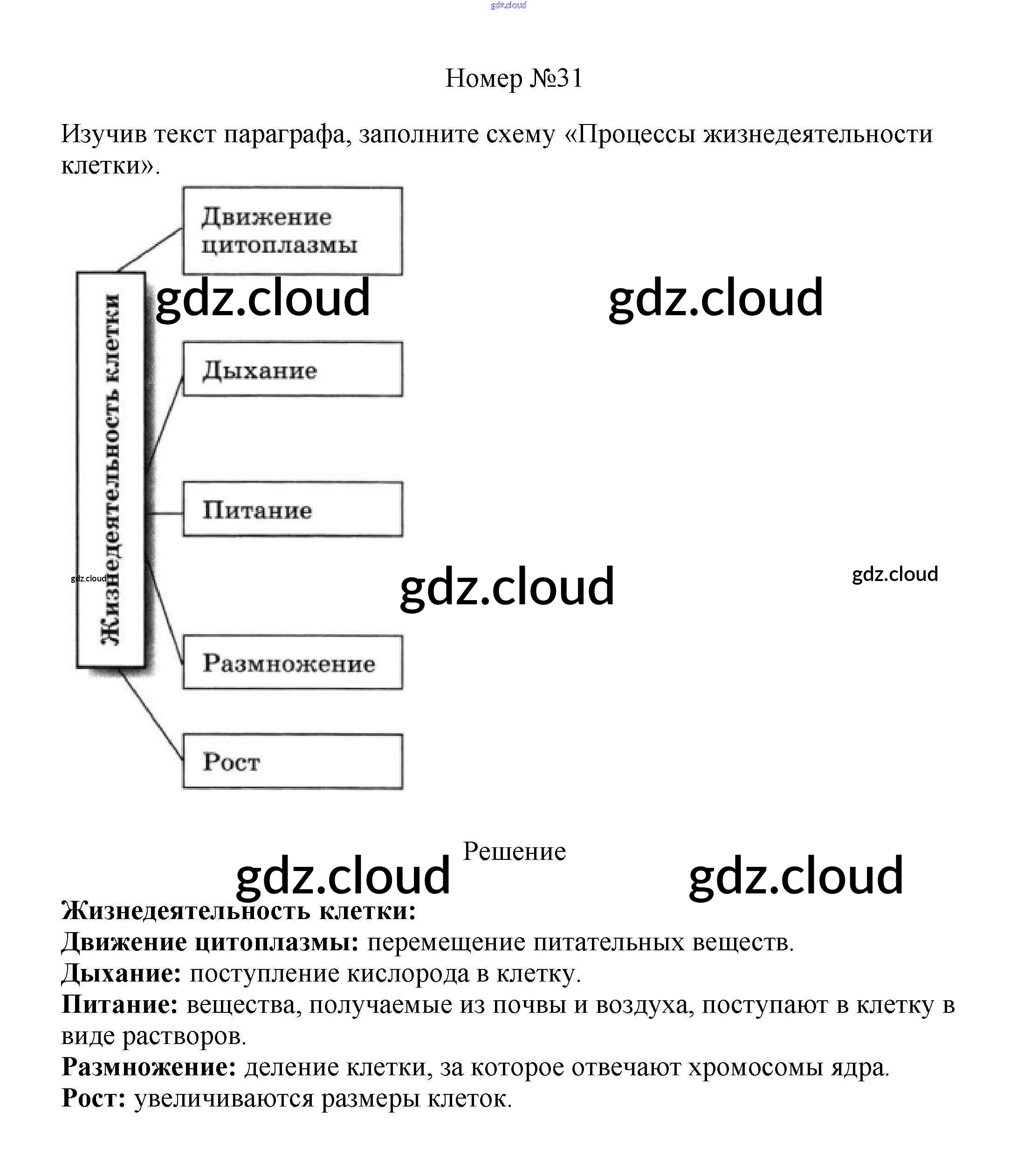 Ответ на задание 31 Рабочая тетрадь Биология за 5 (пятый) класс Пасечник Вертикаль 2015 ФГОС онлайн и без номера телефона.