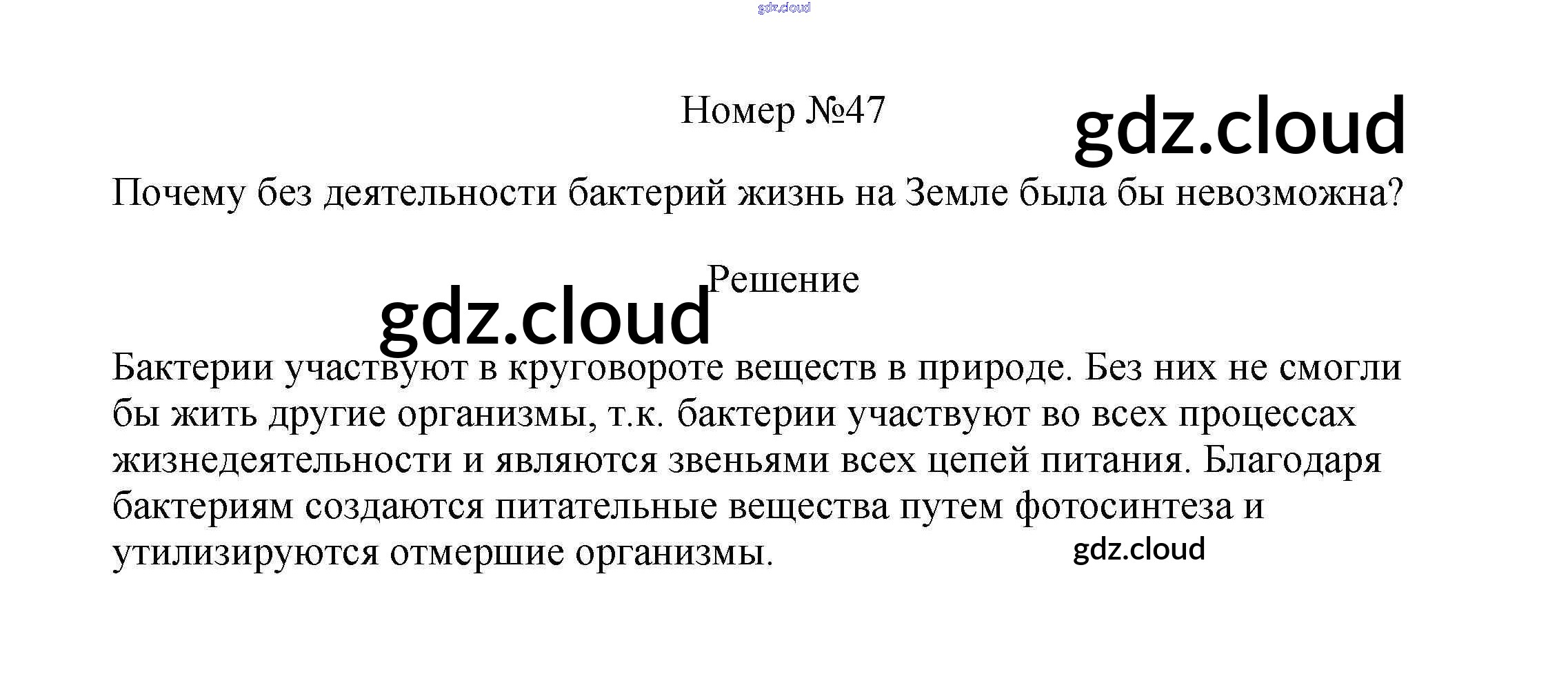 Ответ на задание 47 Рабочая тетрадь Биология за 5 (пятый) класс Пасечник Вертикаль 2015 ФГОС онлайн и без номера телефона.