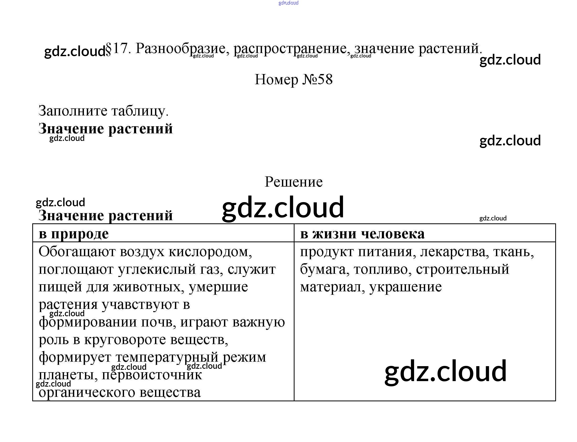 Ответ на задание 58 Рабочая тетрадь Биология за 5 (пятый) класс Пасечник Вертикаль 2015 ФГОС онлайн и без номера телефона.