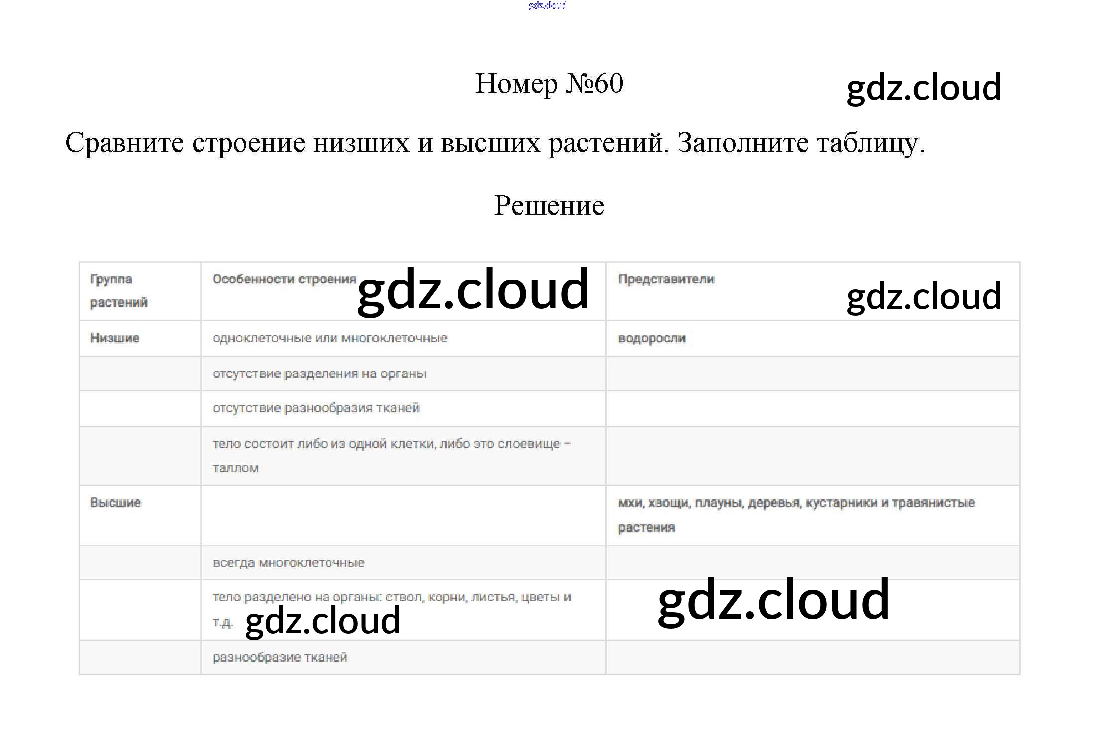 Ответ на задание 60 Рабочая тетрадь Биология за 5 (пятый) класс Пасечник Вертикаль 2015 ФГОС онлайн и без номера телефона.