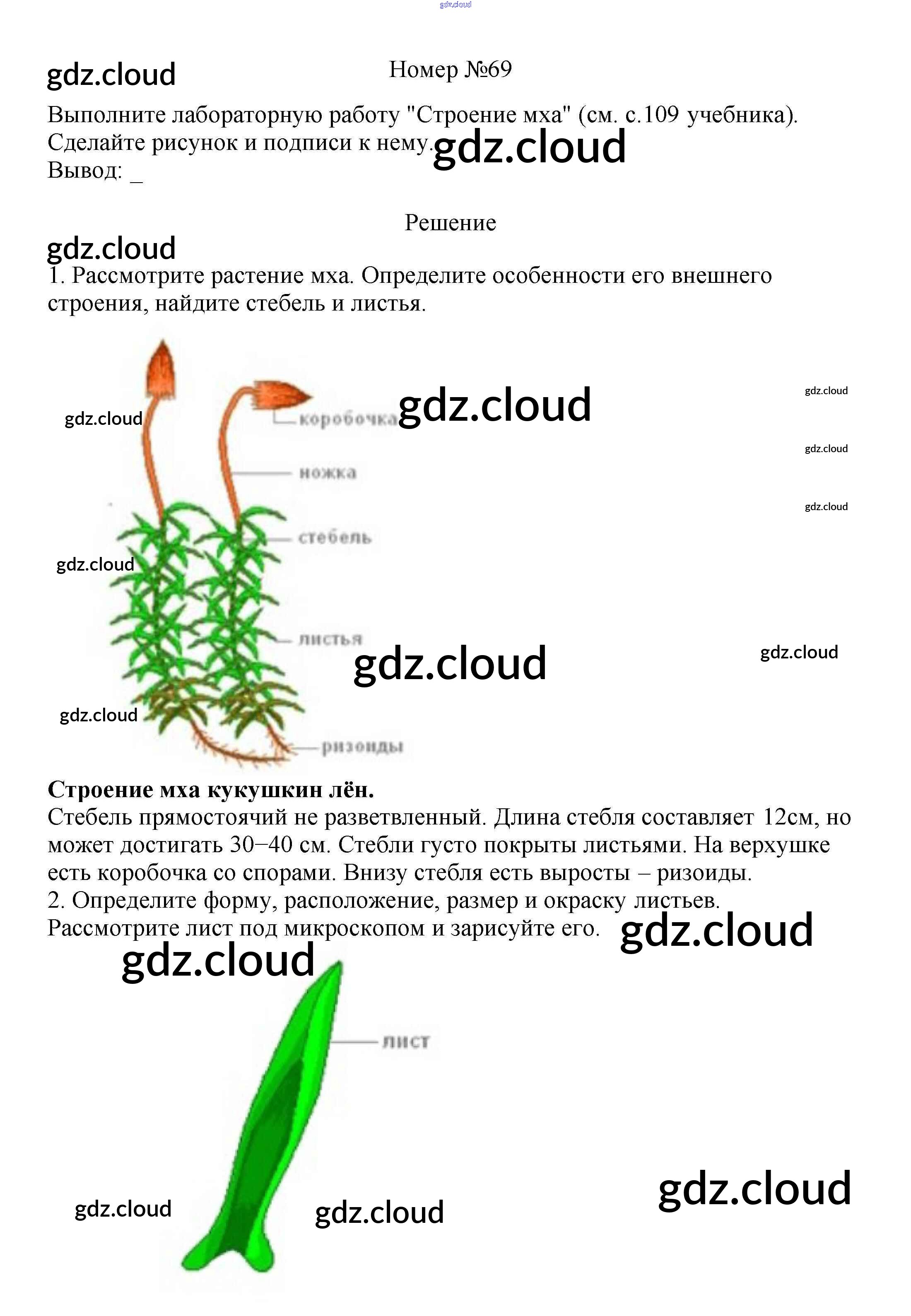 Ответ на задание 69 Рабочая тетрадь Биология за 5 (пятый) класс Пасечник Вертикаль 2015 ФГОС онлайн и без номера телефона.