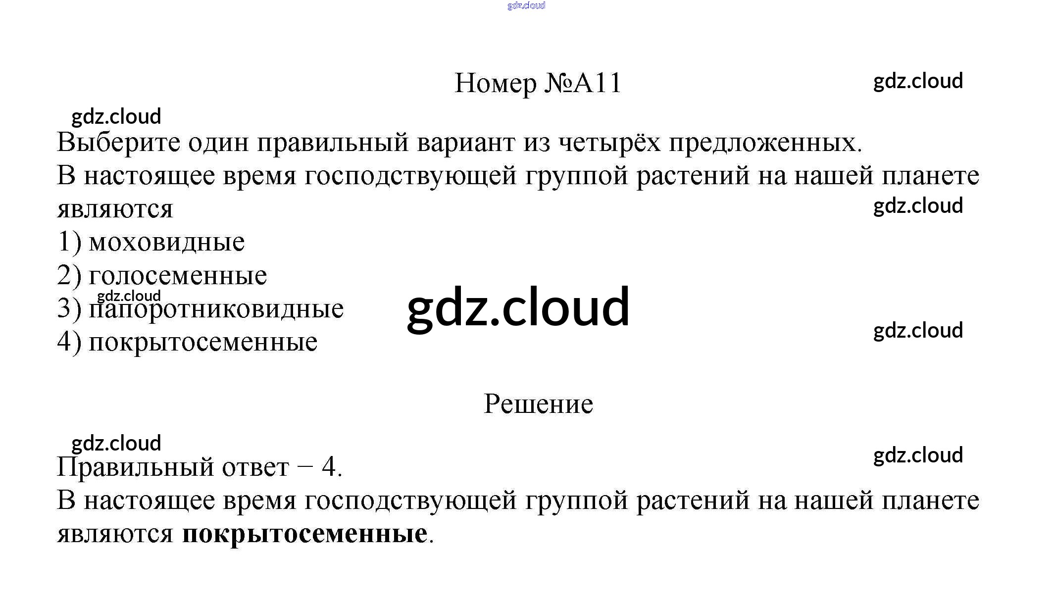 Задания части A Царство растения (ответы) по Биологии 5 класс Рабочая тетрадь Пасечник Вертикаль Дрофа