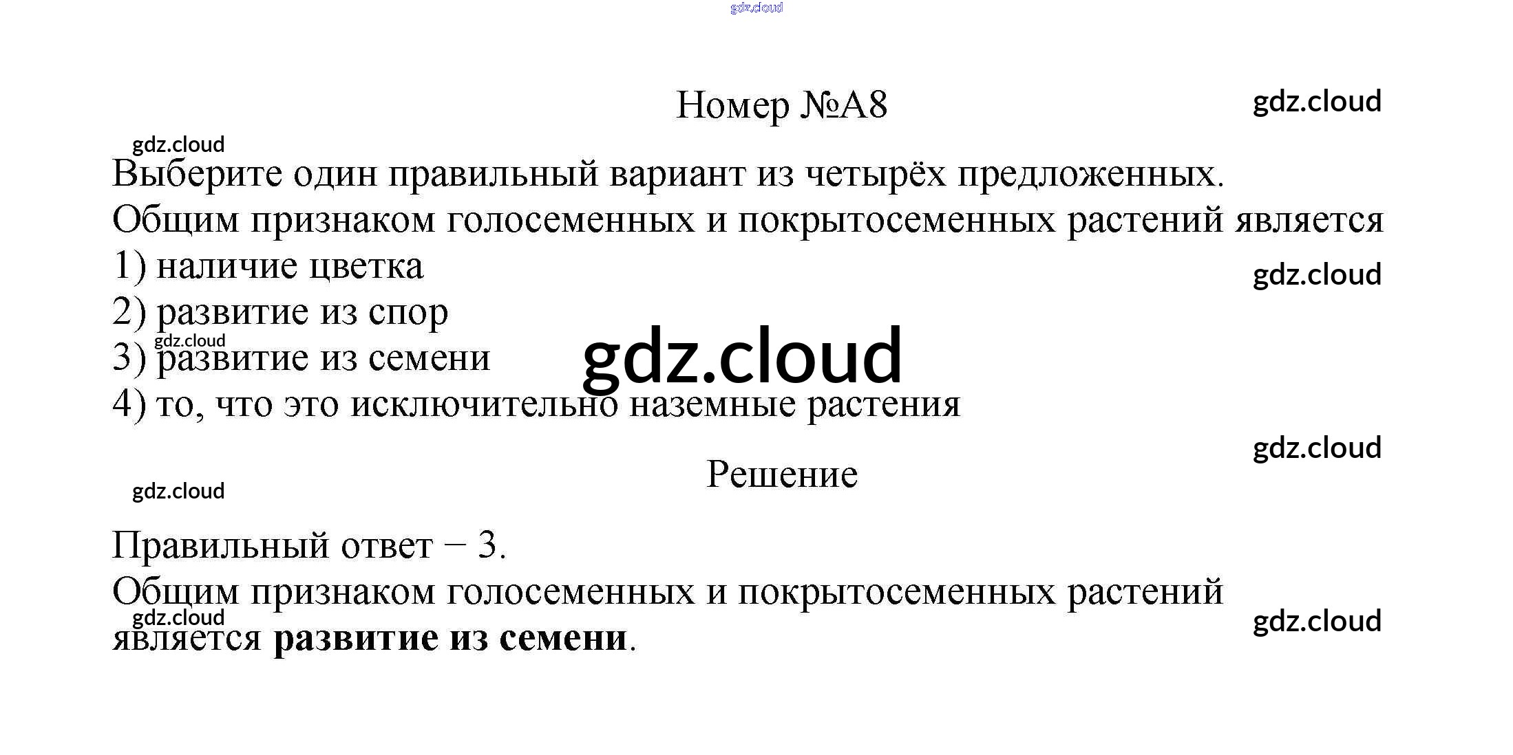 Задания части A Царство растения (ответы) по Биологии 5 класс Рабочая тетрадь Пасечник Вертикаль Дрофа