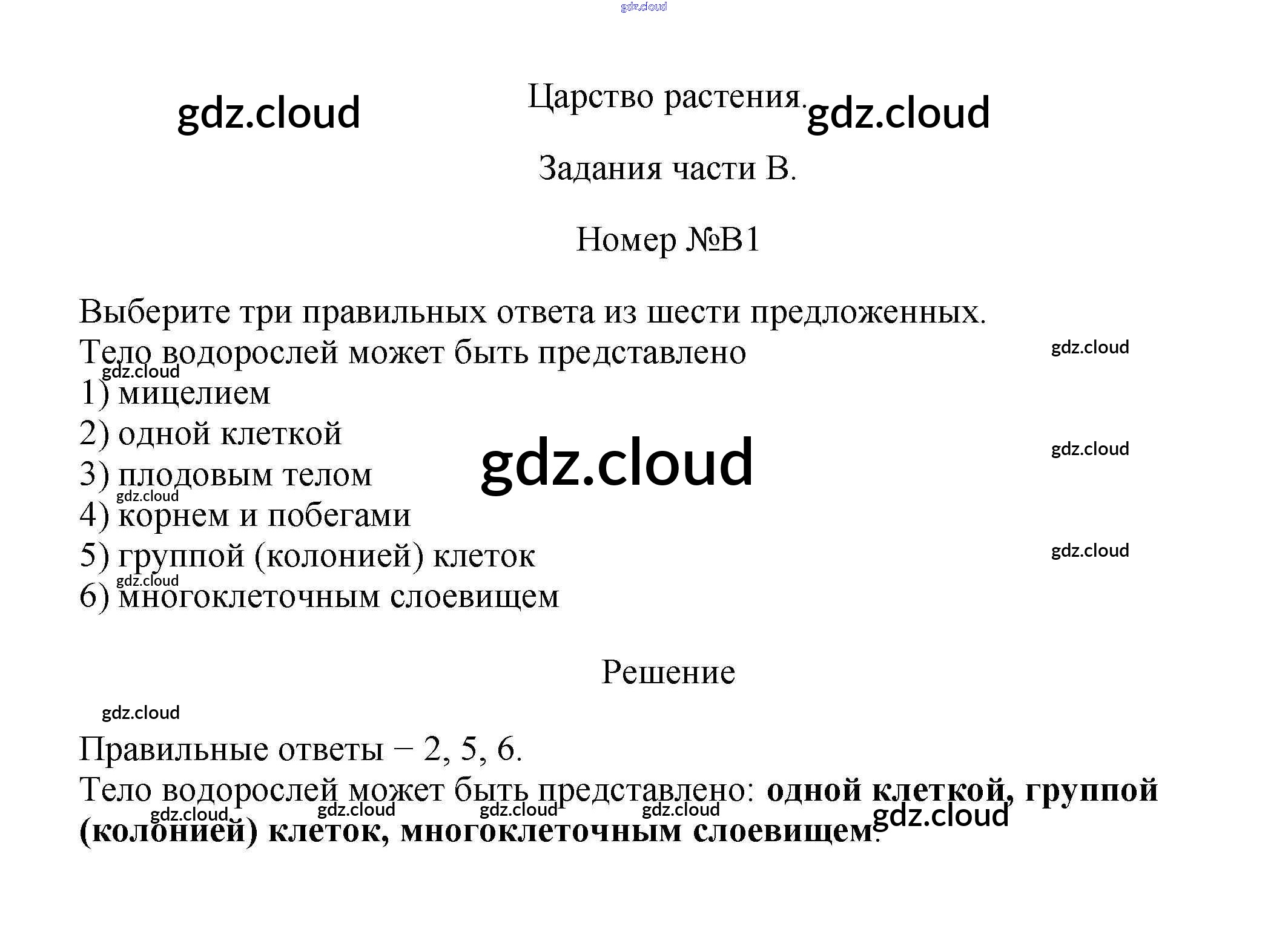 Задания части B Царство растения (ответы) по Биологии 5 класс Рабочая тетрадь Пасечник Вертикаль Дрофа