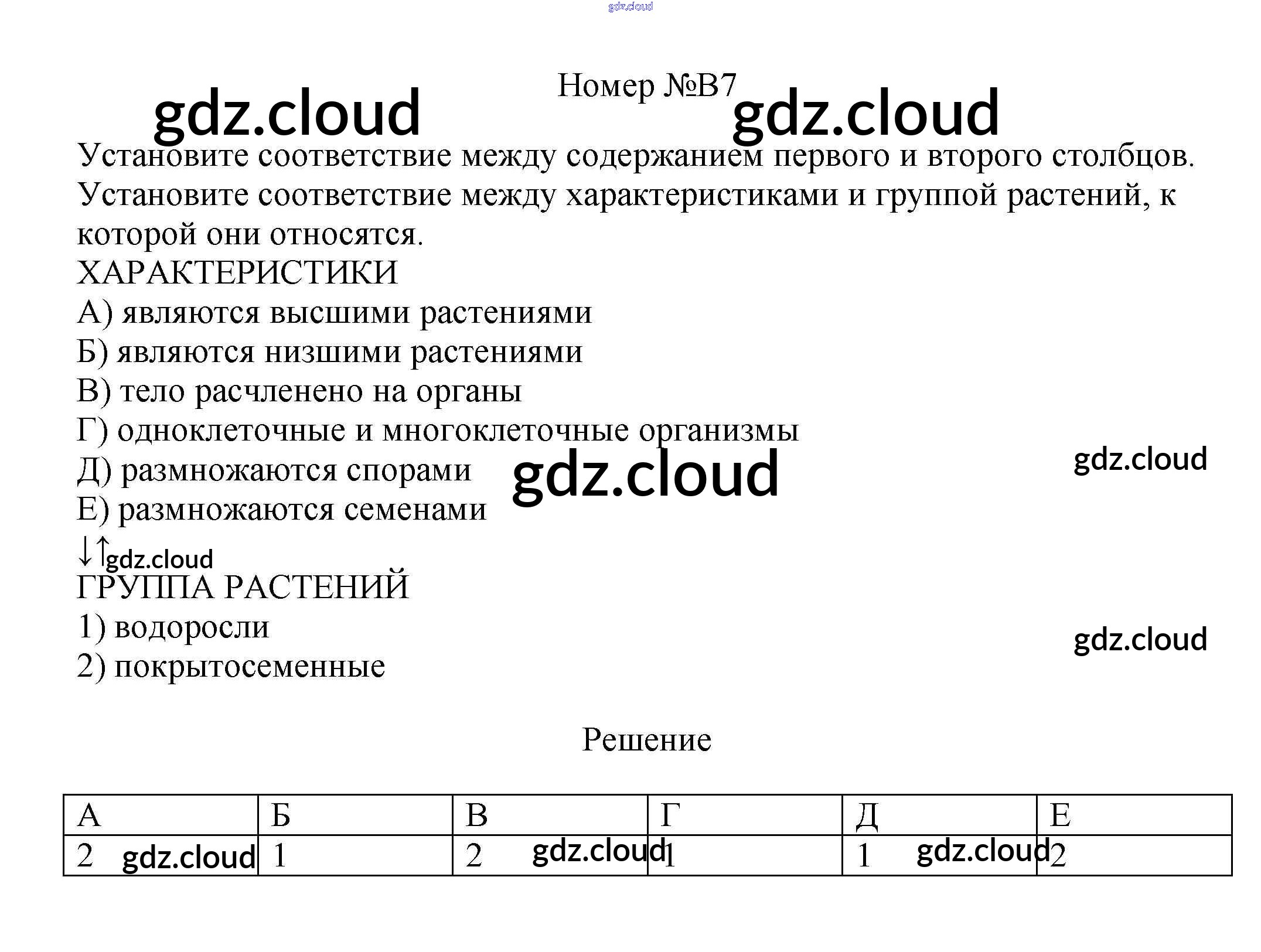 Задания части B Царство растения (ответы) по Биологии 5 класс Рабочая тетрадь Пасечник Вертикаль Дрофа