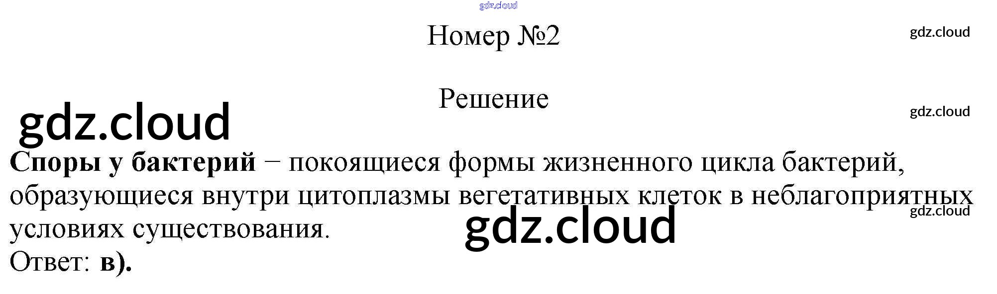 Ответ на задание 2 Тесты Биология за 5 (пятый) класс Пасечник, Ефимова, Швецов, Дмитриева УМК 2020 ФГОС онлайн и без номера телефона.