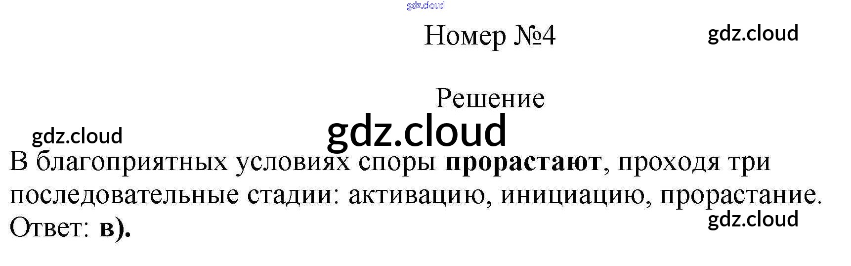 Ответ на задание 4 Тесты Биология за 5 (пятый) класс Пасечник, Ефимова, Швецов, Дмитриева УМК 2020 ФГОС онлайн и без номера телефона.