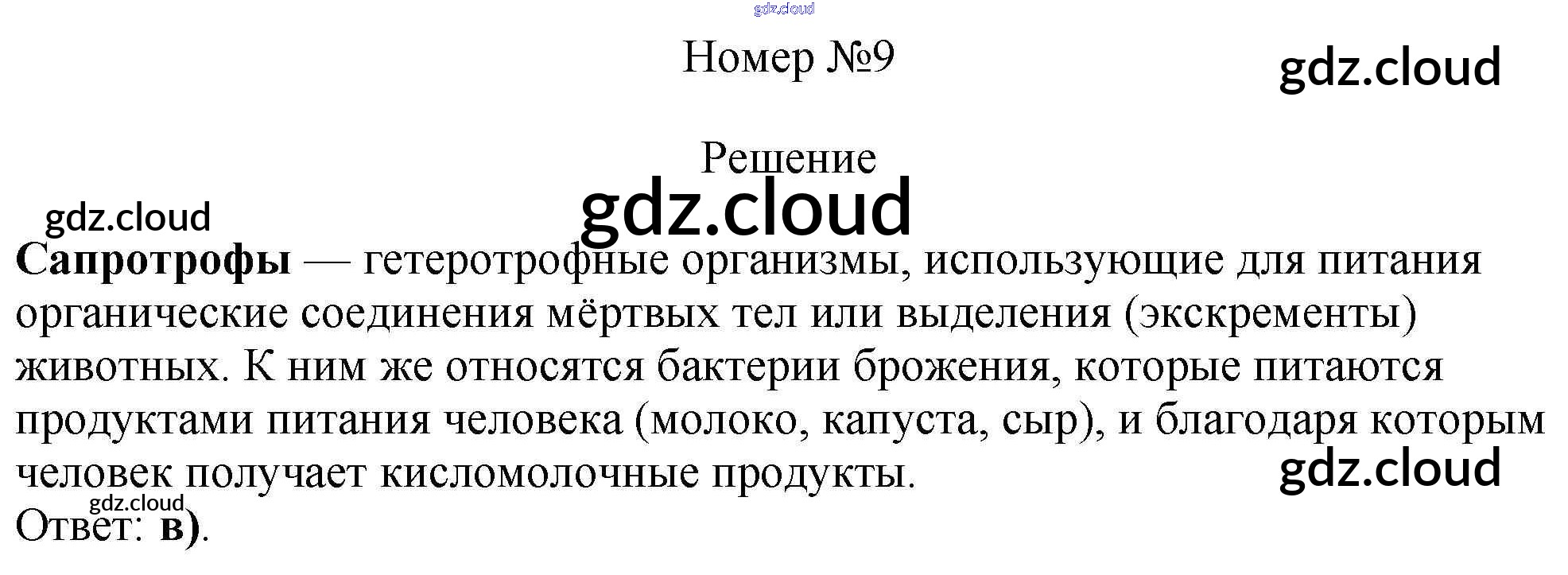 Ответ на задание 9 Тесты Биология за 5 (пятый) класс Пасечник, Ефимова, Швецов, Дмитриева УМК 2020 ФГОС онлайн и без номера телефона.