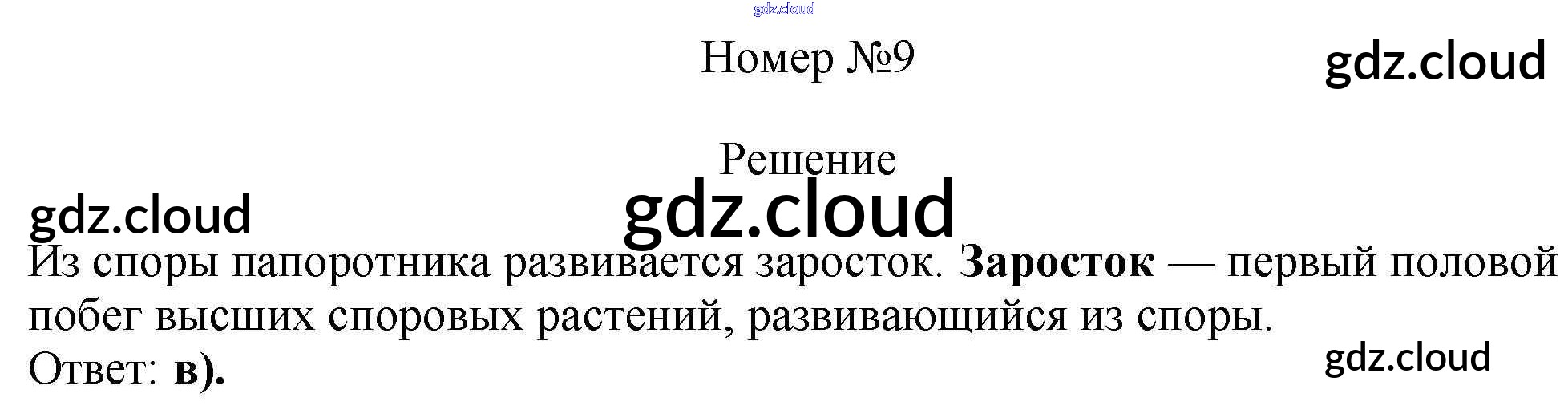 Ответ на задание 9 Тесты Биология за 5 (пятый) класс Пасечник, Ефимова, Швецов, Дмитриева УМК 2020 ФГОС онлайн и без номера телефона.