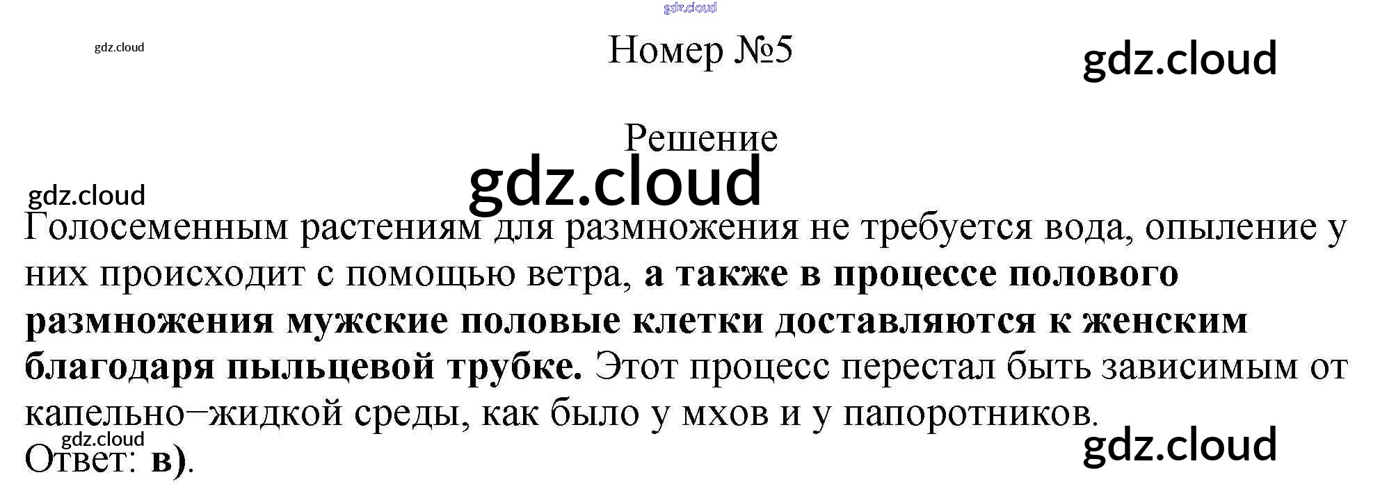 Ответ на задание 5 Тесты Биология за 5 (пятый) класс Пасечник, Ефимова, Швецов, Дмитриева УМК 2020 ФГОС онлайн и без номера телефона.