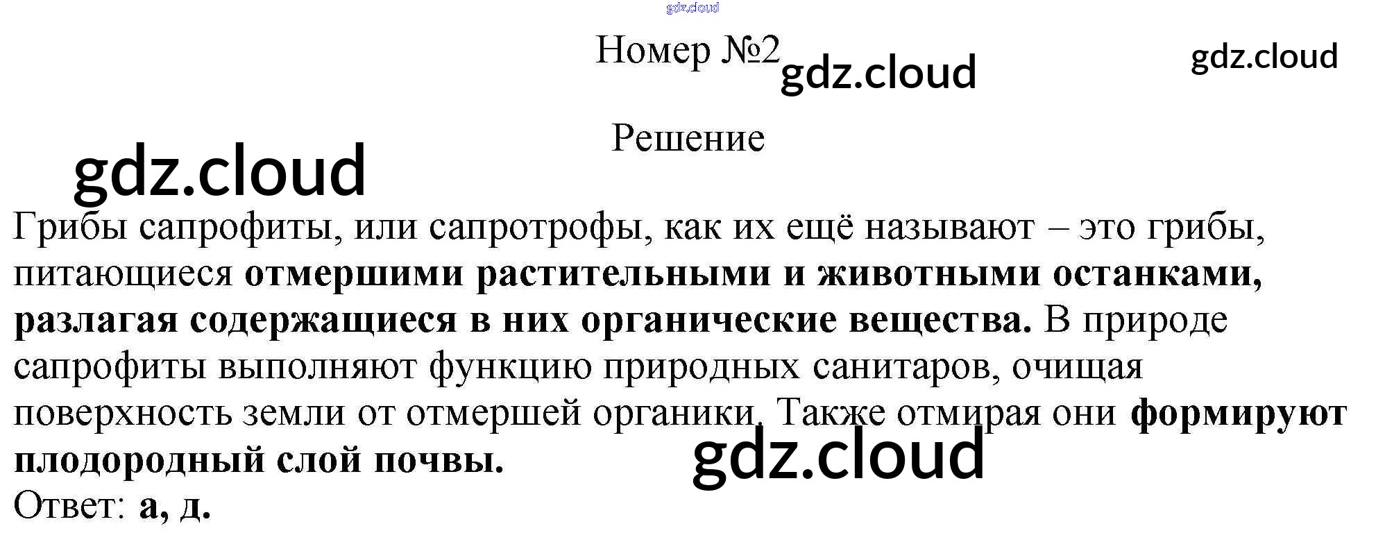 Ответ на задание 2 Тесты Биология за 5 (пятый) класс Пасечник, Ефимова, Швецов, Дмитриева УМК 2020 ФГОС онлайн и без номера телефона.