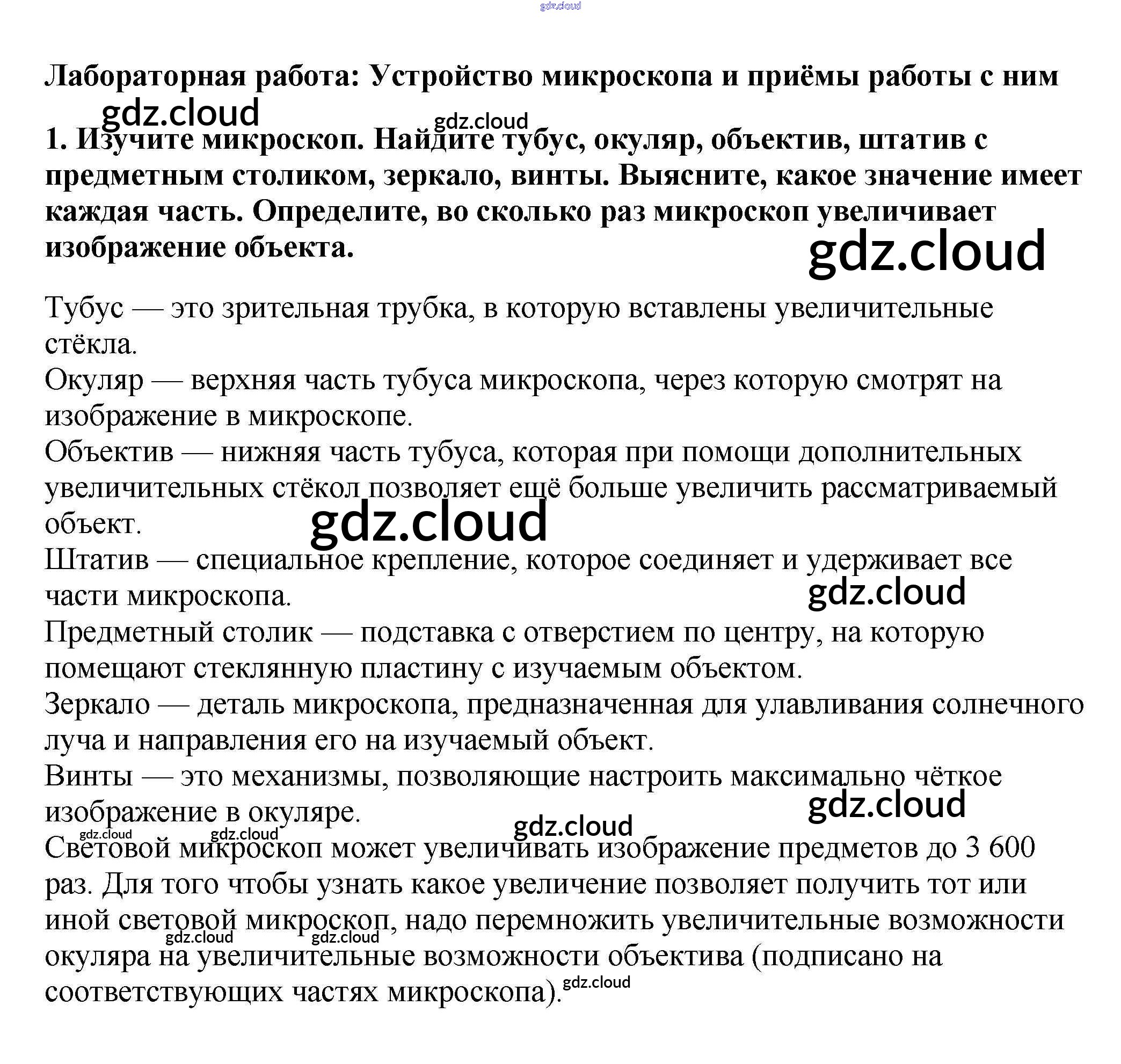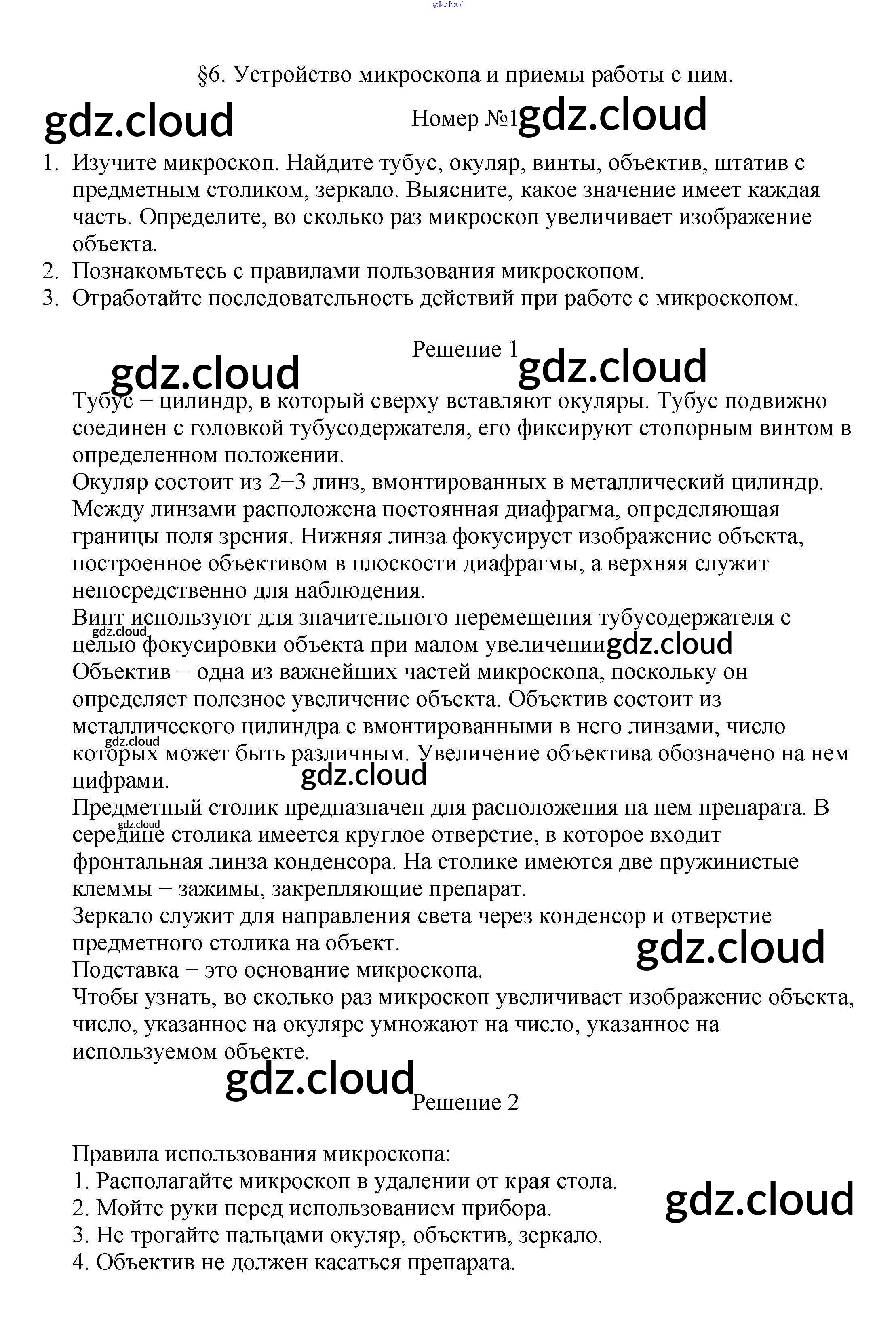 Устройство микроскопа и приёмы работы с ним Ответы к §6 по Биологии 5 класс Учебник Пасечник УМК Дрофа
