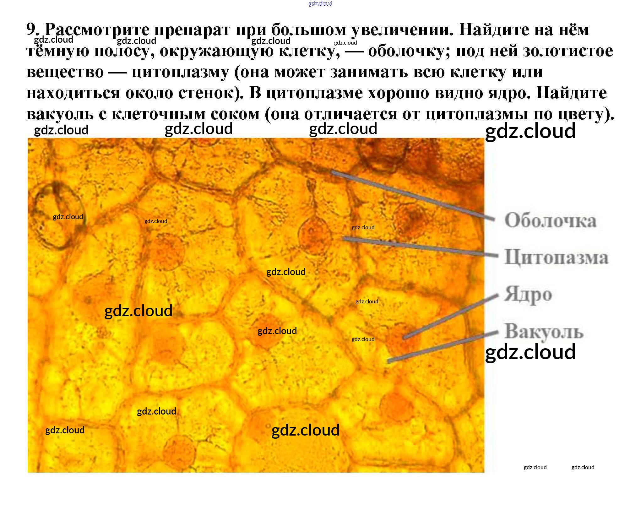 §7 / приготовление и рассматривание препарата кожицы чешуи лука под микроскопом / 9