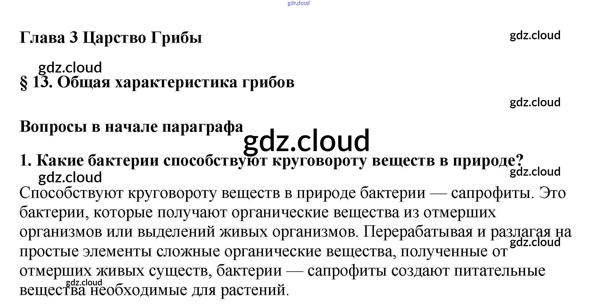 Вопросы в начале параграфа Ответы к §13 по Биологии 5 класс Учебник Пасечник УМК Дрофа