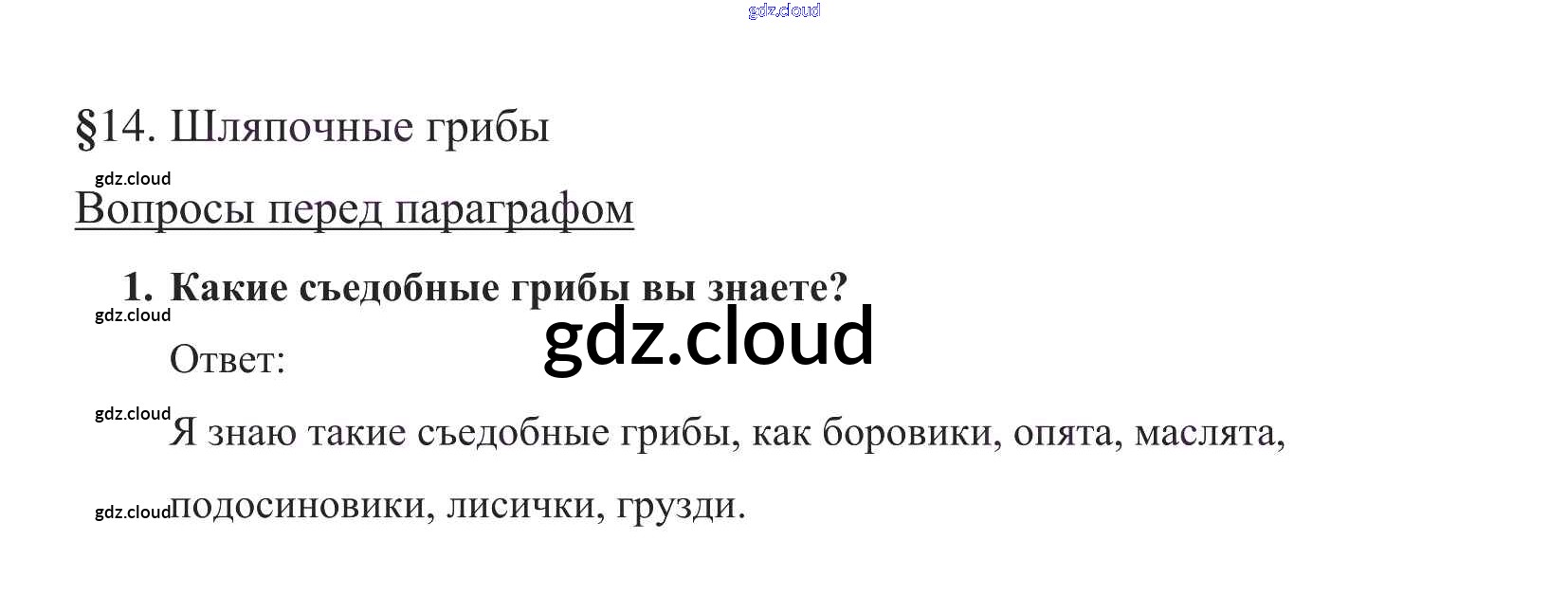 Вопросы в начале параграфа Ответы к §14 по Биологии 5 класс Учебник Пасечник УМК Дрофа