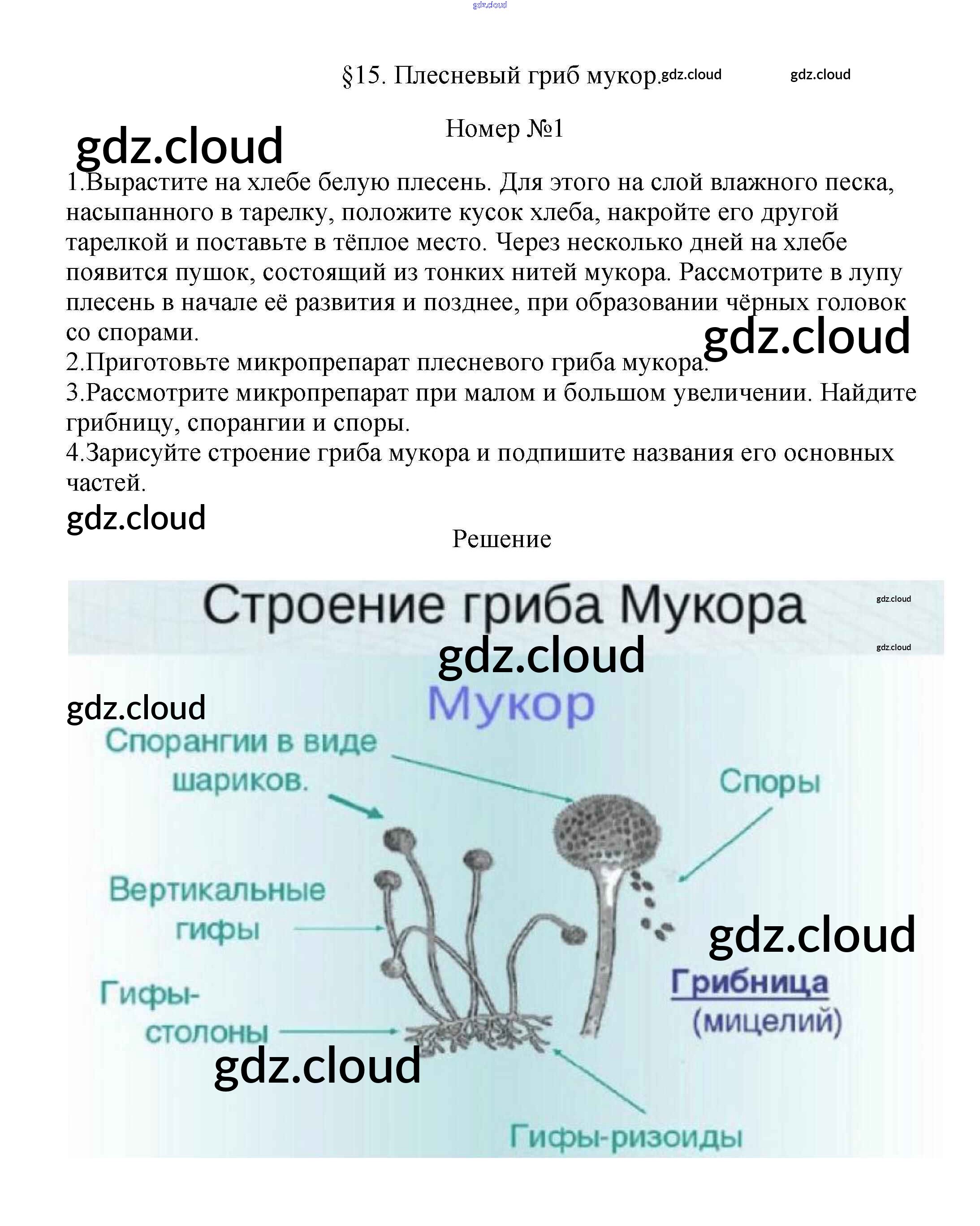 Плесневый гриб мукор Ответы к §15 по Биологии 5 класс Учебник Пасечник УМК Дрофа