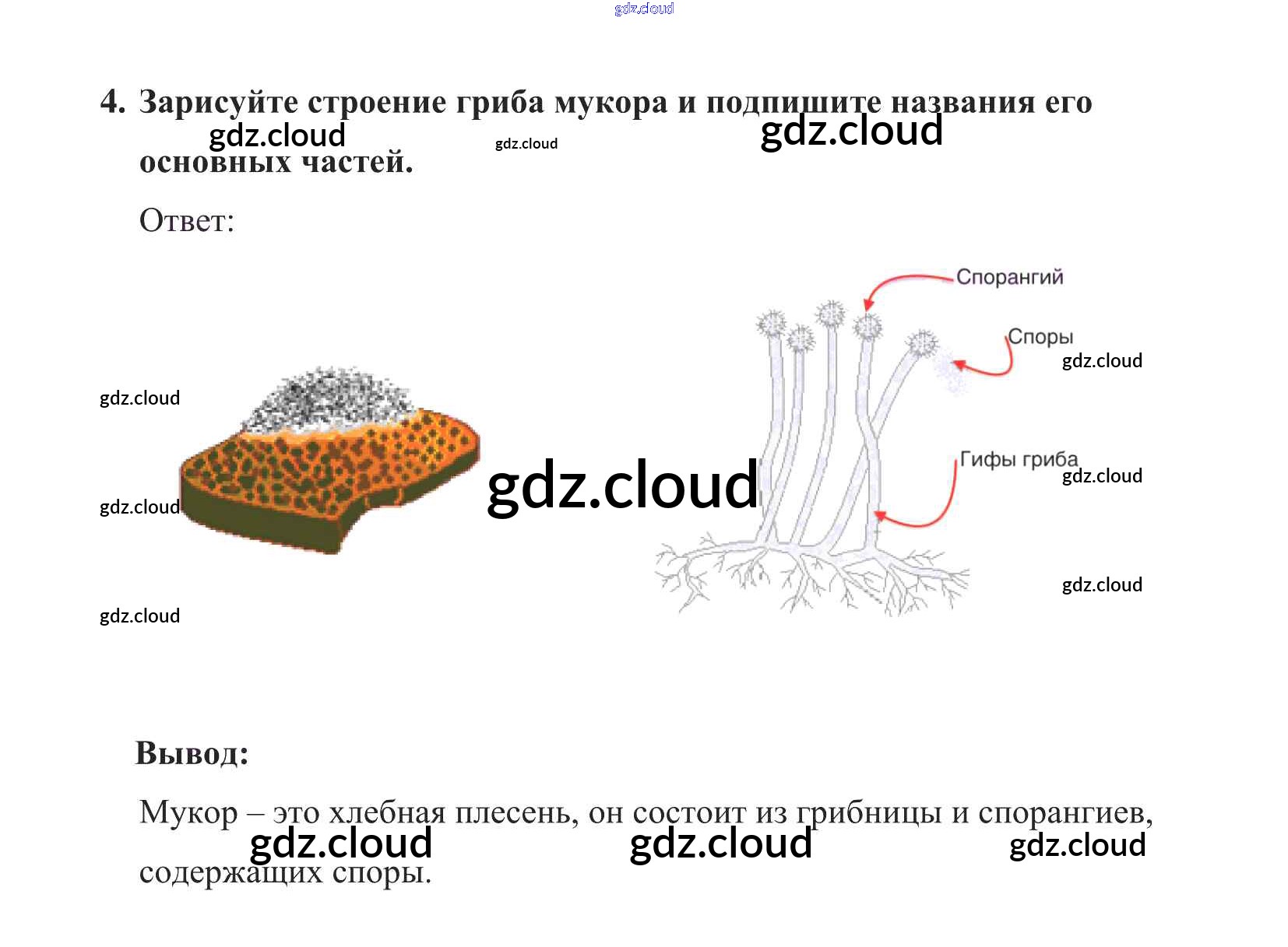 Плесневый гриб мукор Ответы к §15 по Биологии 5 класс Учебник Пасечник УМК Дрофа