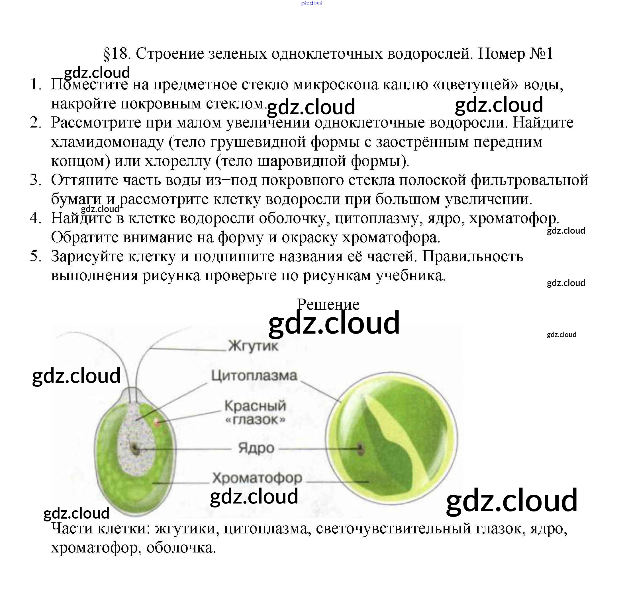 Строение зелёных одноклеточных водорослей Ответы к §18 по Биологии 5 класс Учебник Пасечник УМК Дрофа
