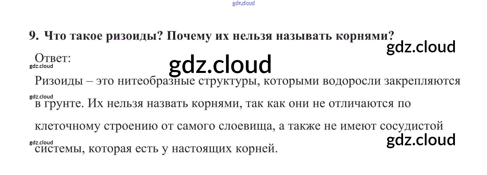 Ответ на задание 9 Учебник Биология за 5 (пятый) класс Пасечник УМК 2016