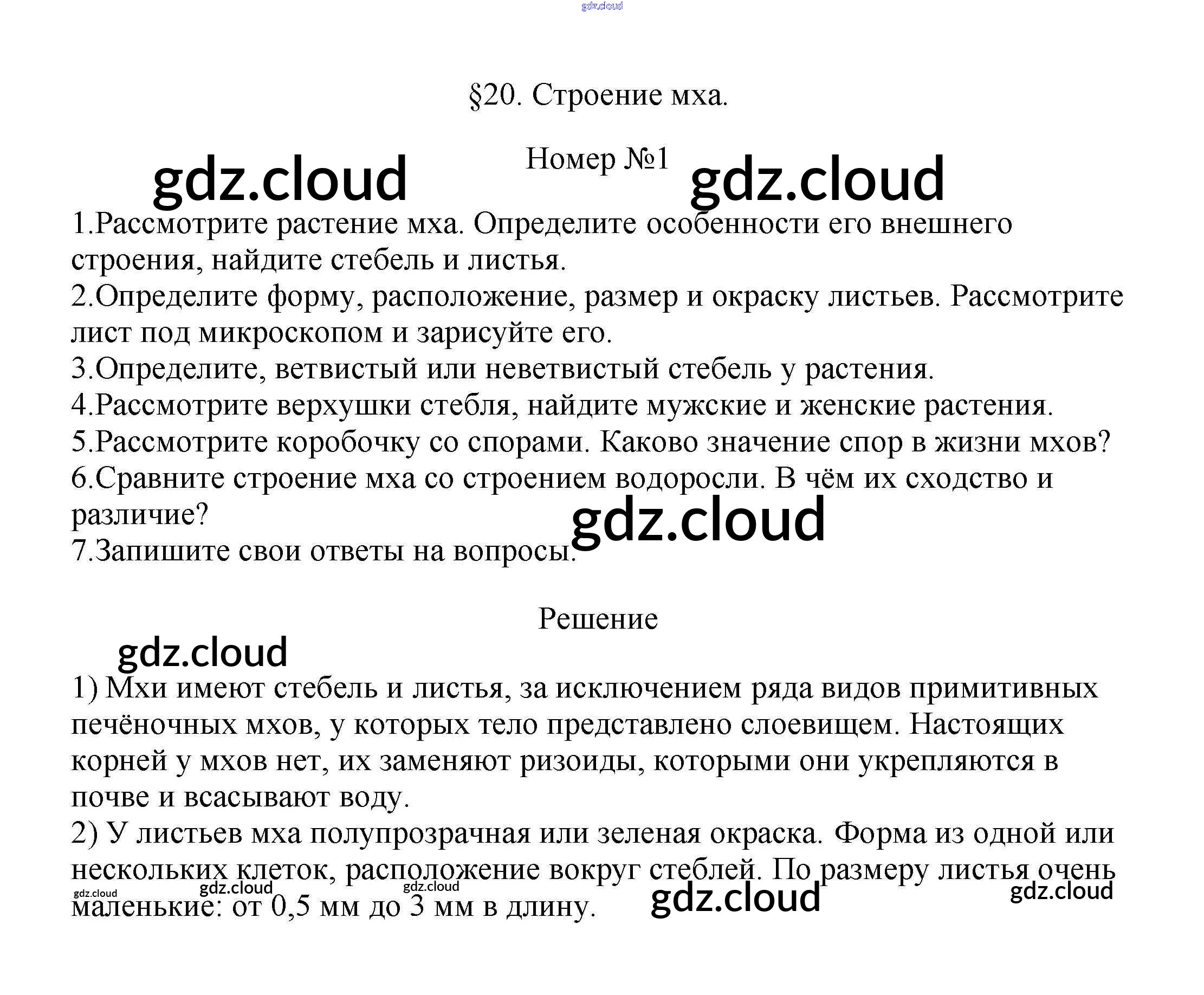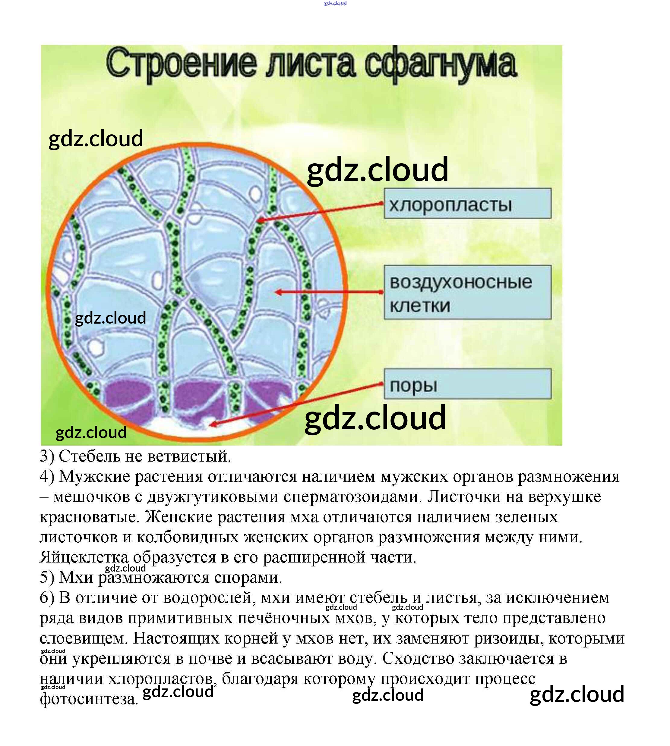 Строение мха Ответы к §20 по Биологии 5 класс Учебник Пасечник УМК Дрофа