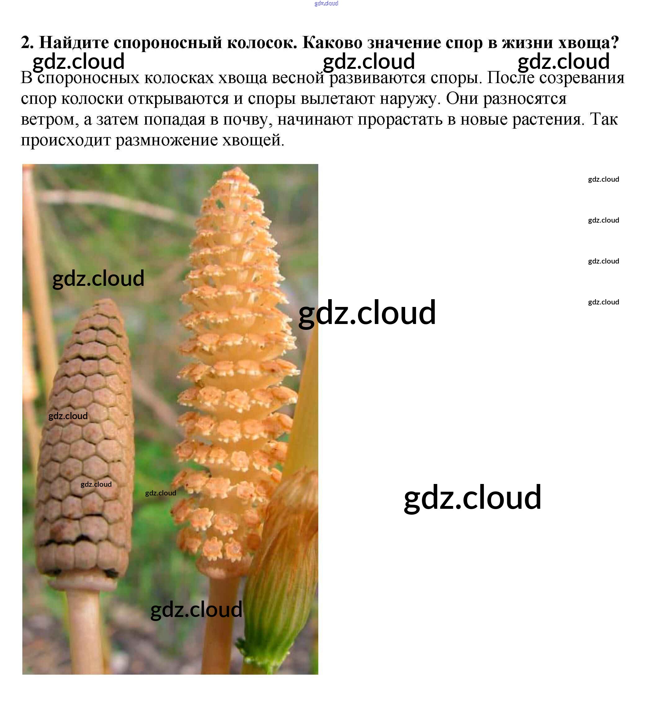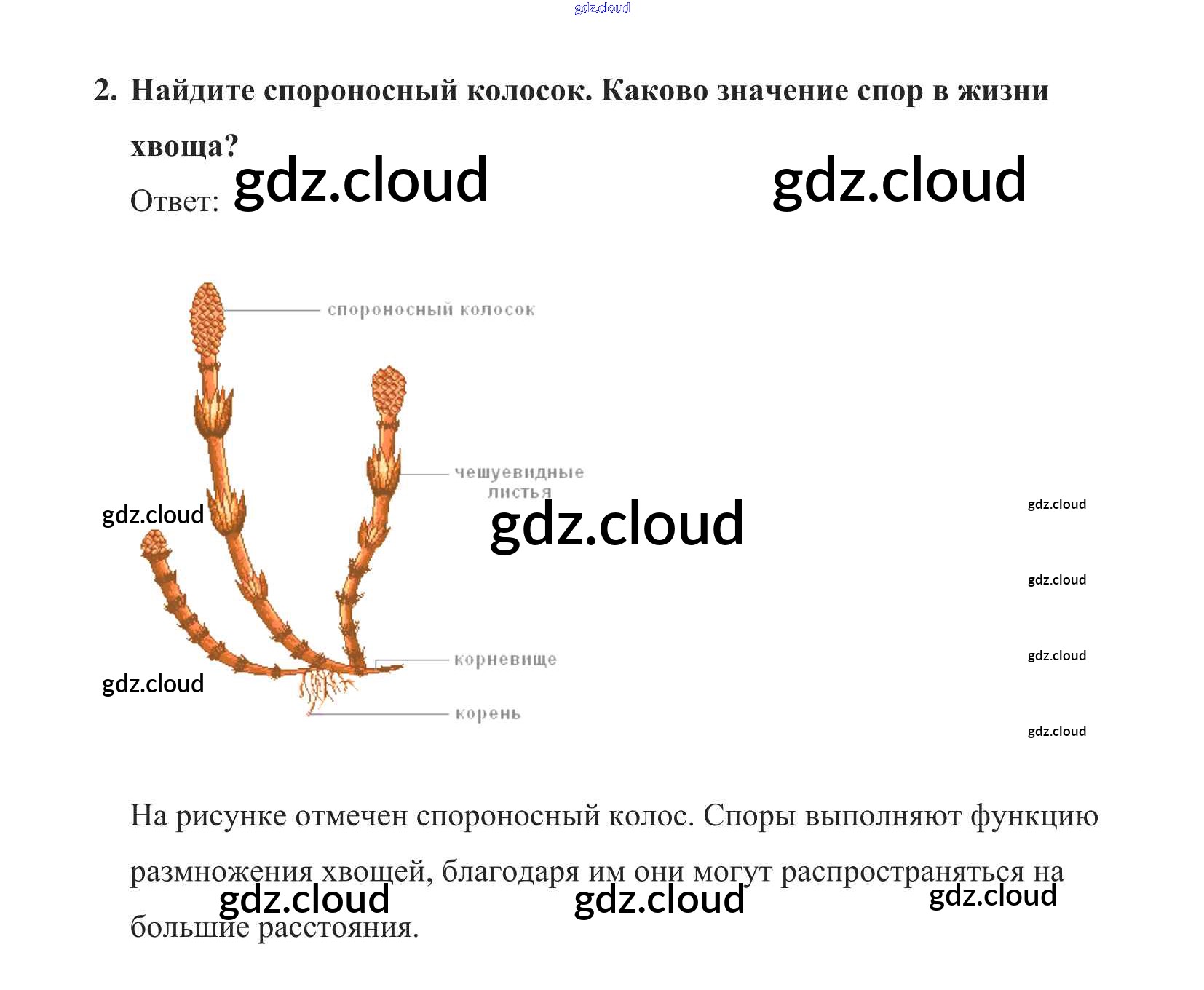 Строение спороносящего хвоща Ответы к §21 по Биологии 5 класс Учебник Пасечник УМК Дрофа
