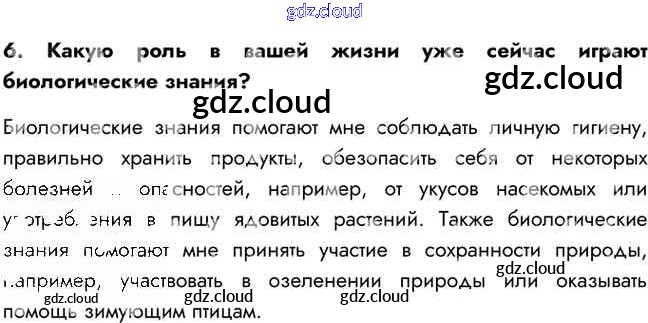 Ответ на задание 6 Учебник Биология за 5 (пятый) класс Сивоглазов, Плешаков 2020 ФГОС онлайн и без номера телефона.
