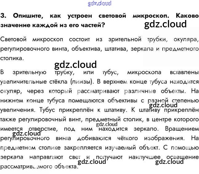 Ответ на задание 3 Учебник Биология за 5 (пятый) класс Сивоглазов, Плешаков 2020 ФГОС онлайн и без номера телефона.