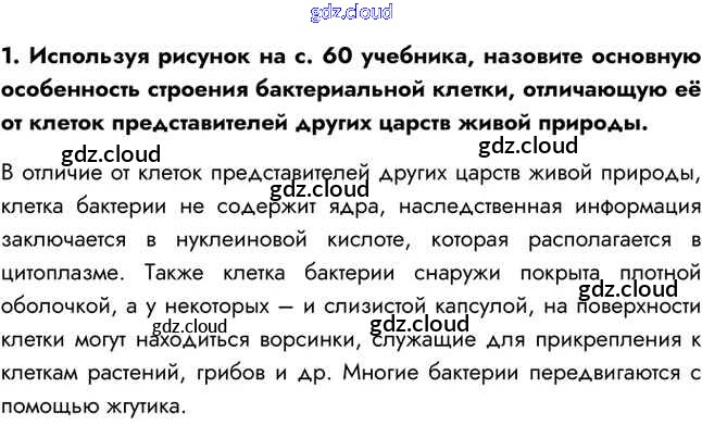 Ответ на задание 1 Учебник Биология за 5 (пятый) класс Сивоглазов, Плешаков 2020 ФГОС онлайн и без номера телефона.