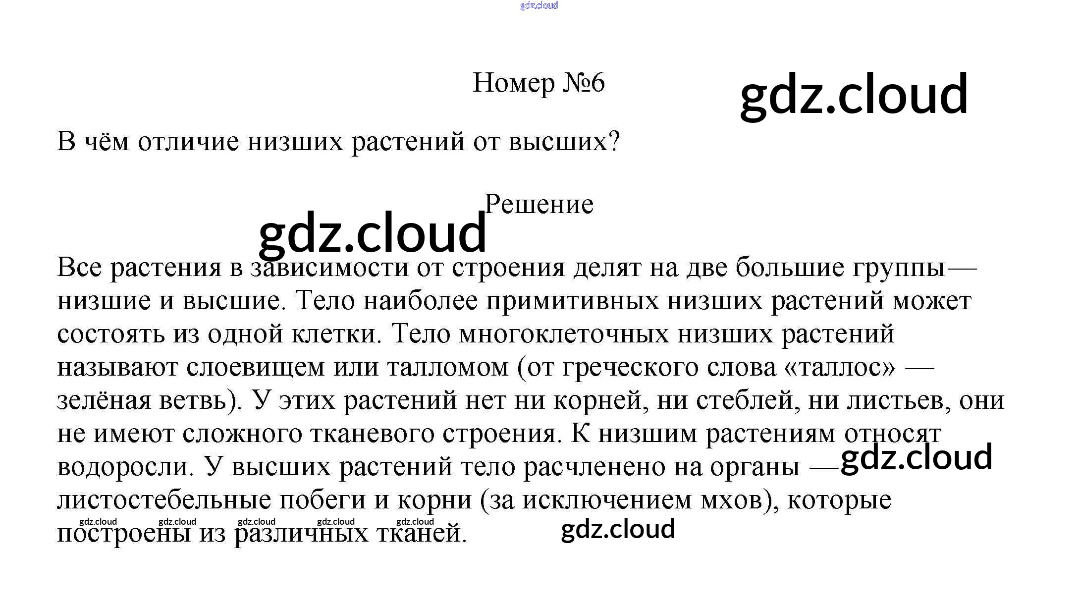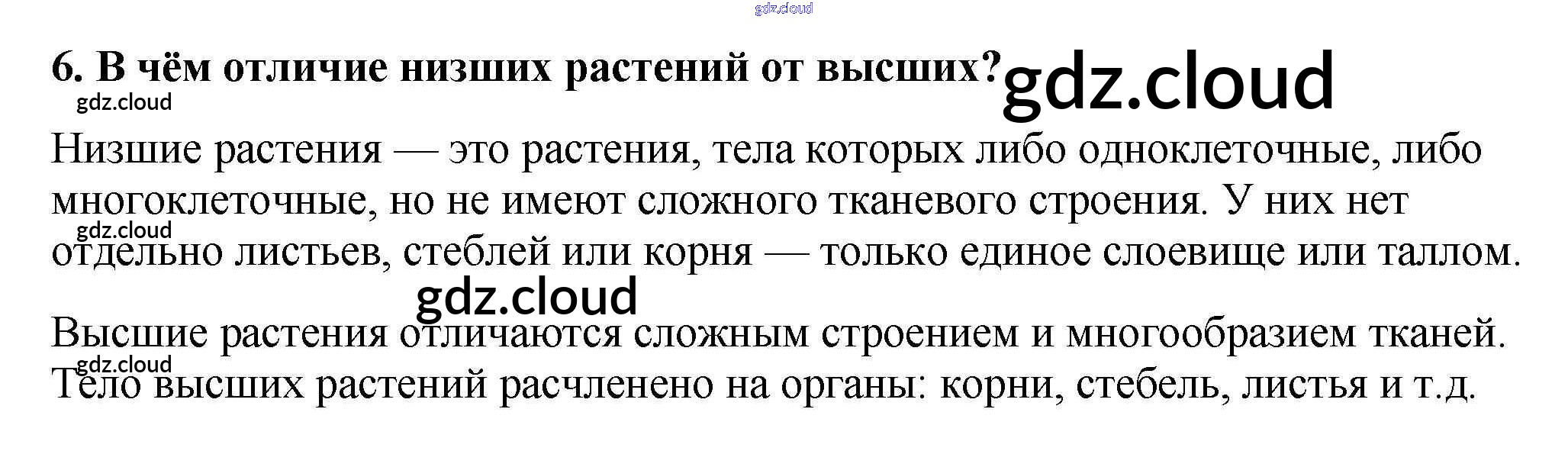 Ответ на задание 6 Учебник Биология за 6 (шестой) класс Пасечник Линейный курс 2020