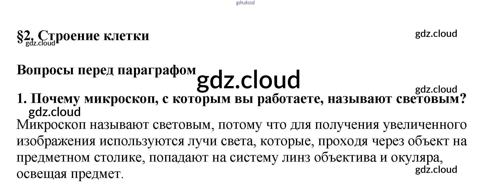 Вопросы перед параграфом Ответы к §2 по Биологии 6 класс Учебник Пасечник Линейный курс Дрофа