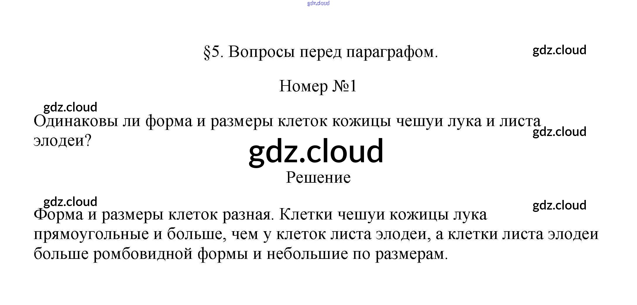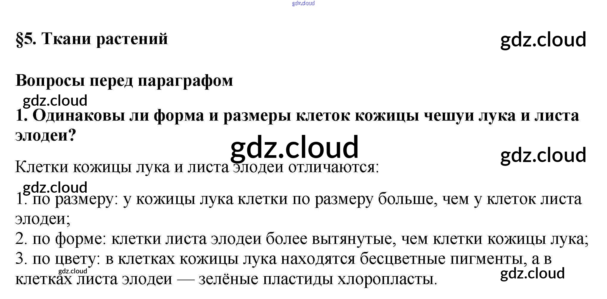 Вопросы перед параграфом Ответы к §5 по Биологии 6 класс Учебник Пасечник Линейный курс Дрофа