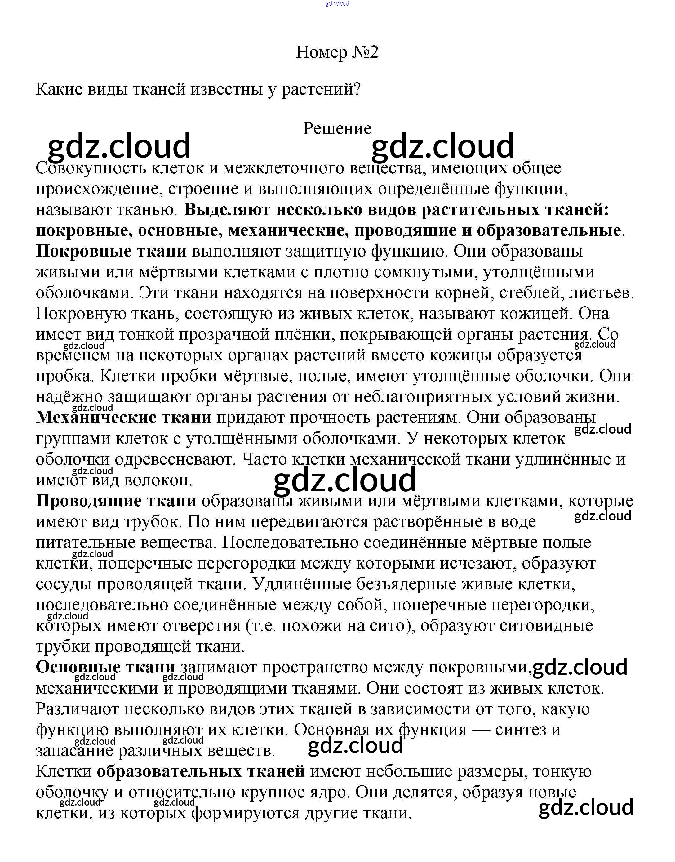 Ответ на задание 2 Учебник Биология за 6 (шестой) класс Пасечник Линейный курс 2020