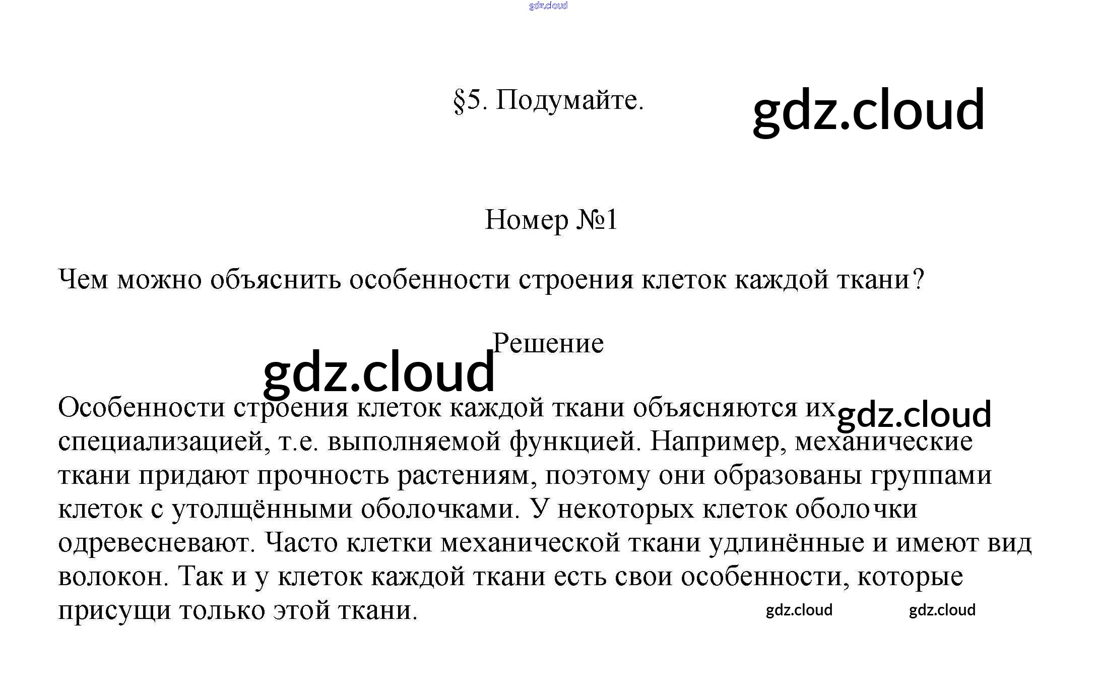 Подумайте Ответы к §5 по Биологии 6 класс Учебник Пасечник Линейный курс Дрофа