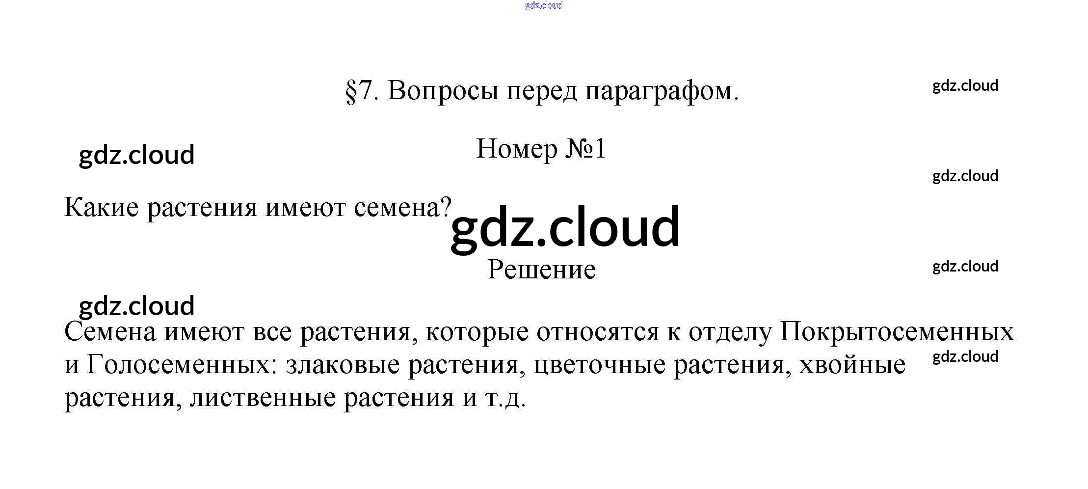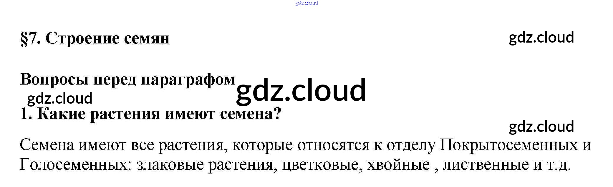 Вопросы перед параграфом Ответы к §7 по Биологии 6 класс Учебник Пасечник Линейный курс Дрофа