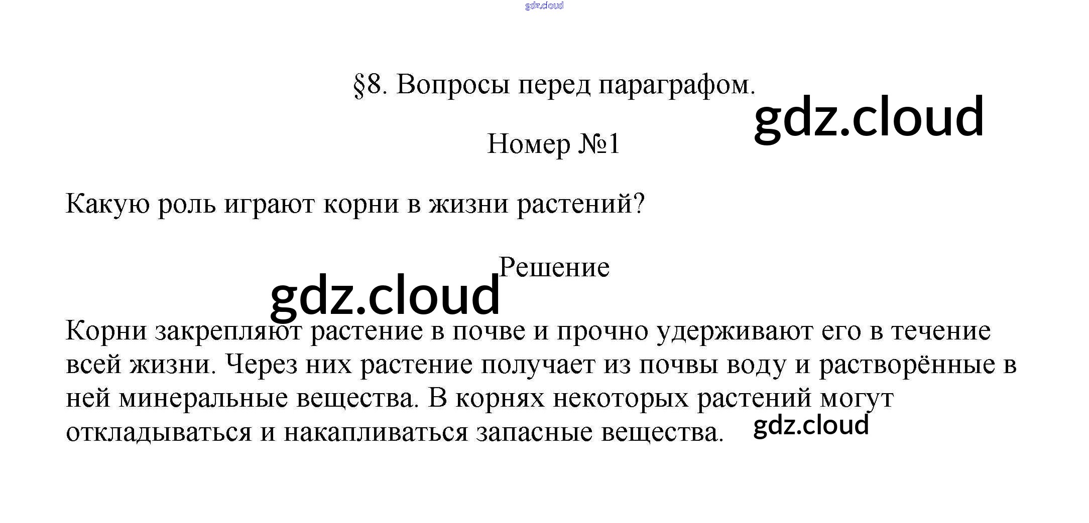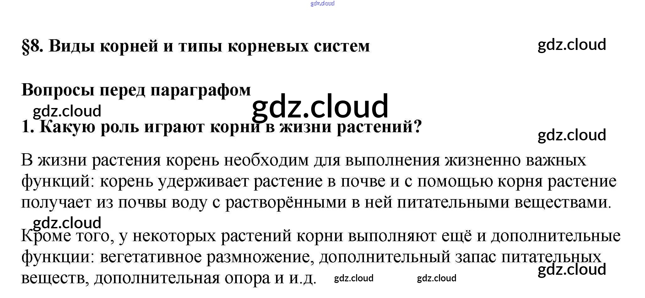 Вопросы перед параграфом Ответы к §8 по Биологии 6 класс Учебник Пасечник Линейный курс Дрофа