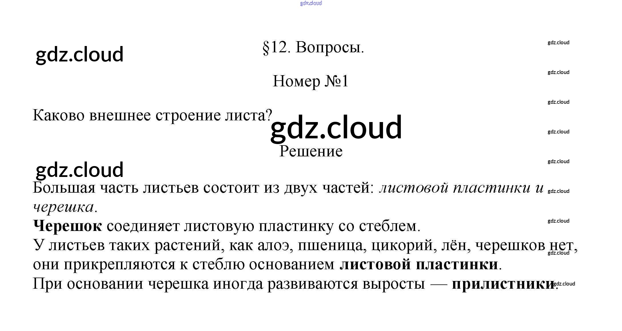 Вопросы Ответы к §12 по Биологии 6 класс Учебник Пасечник Линейный курс Дрофа