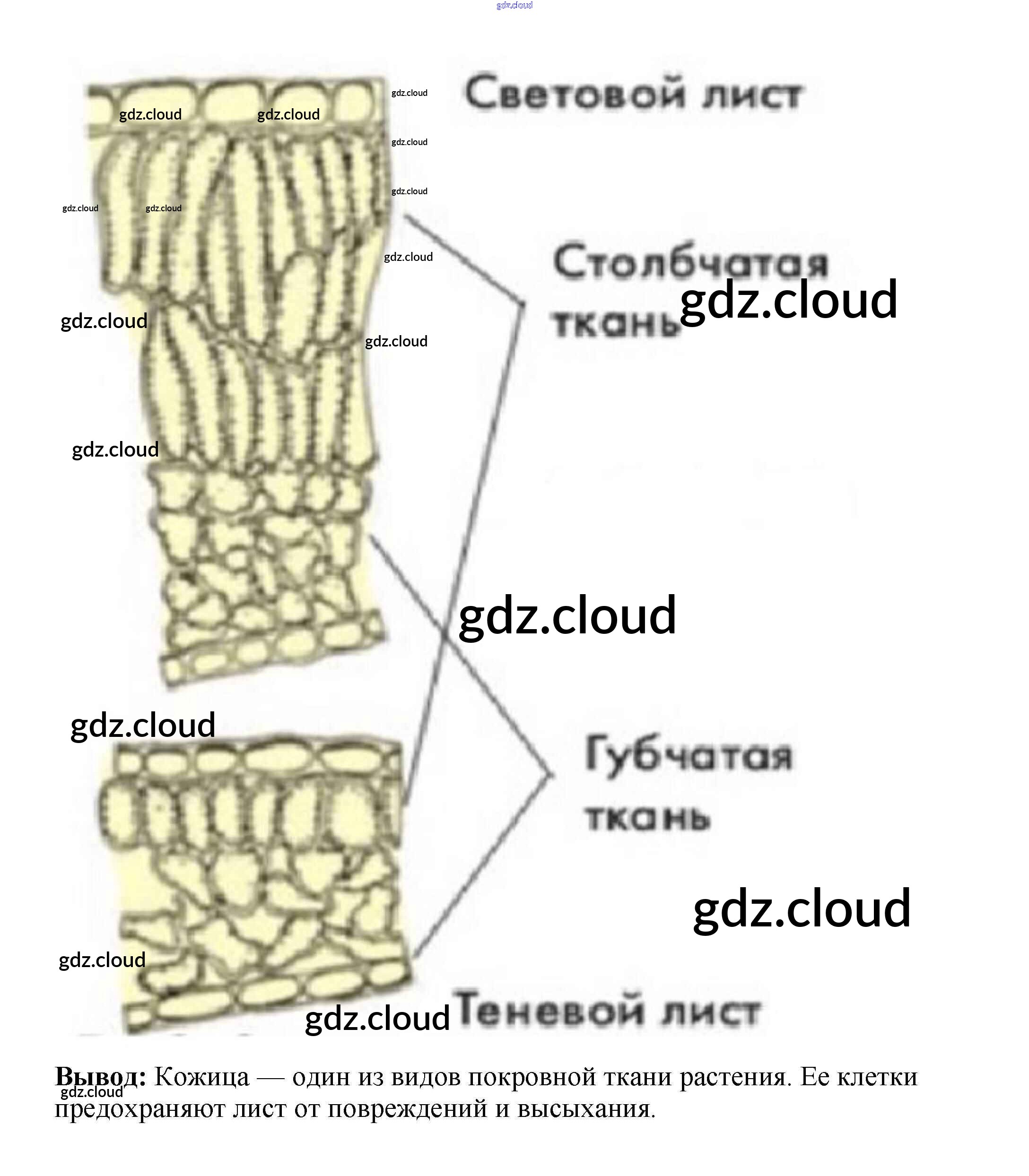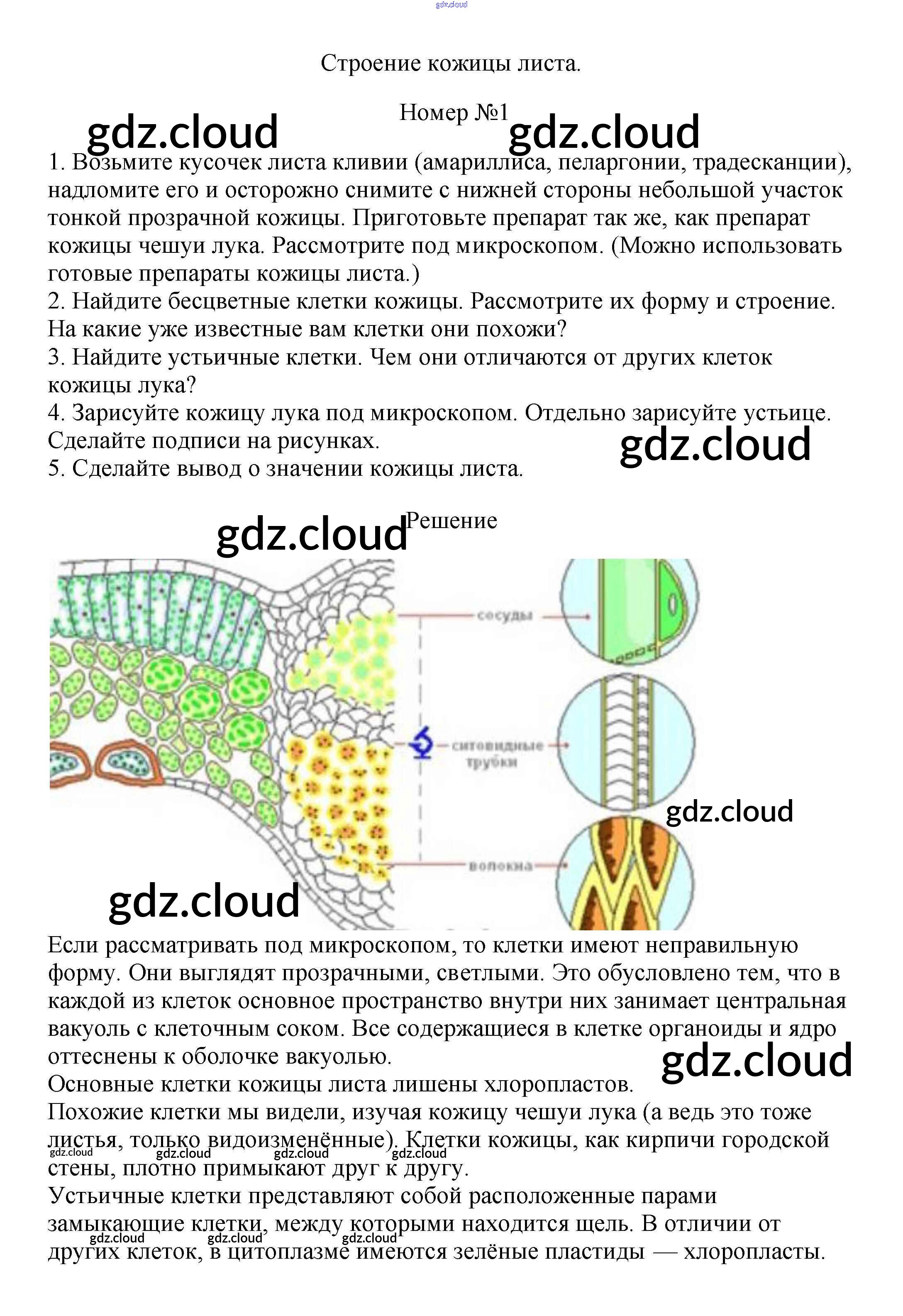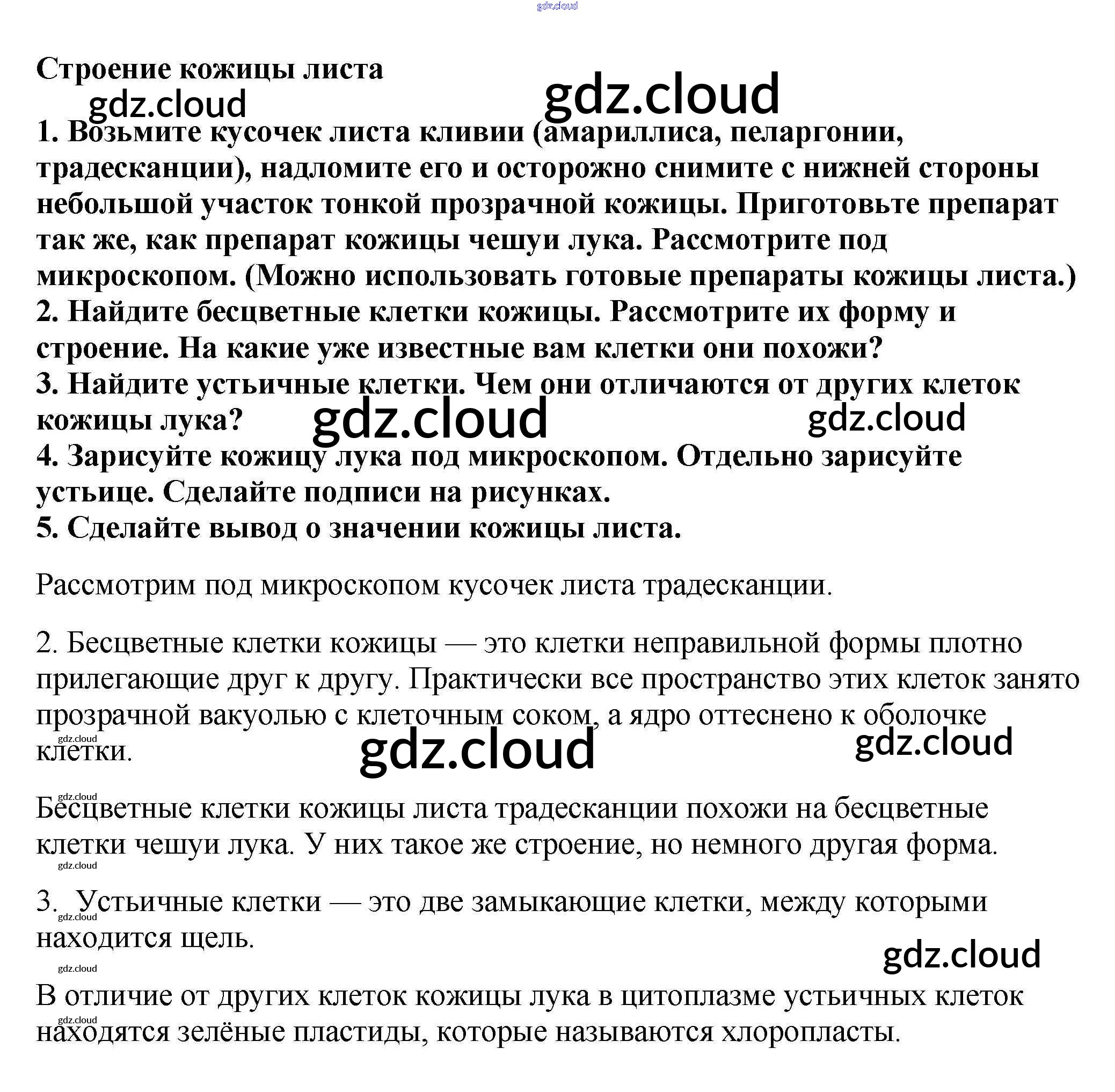 Строение кожицы листа Ответы к §13 по Биологии 6 класс Учебник Пасечник Линейный курс Дрофа