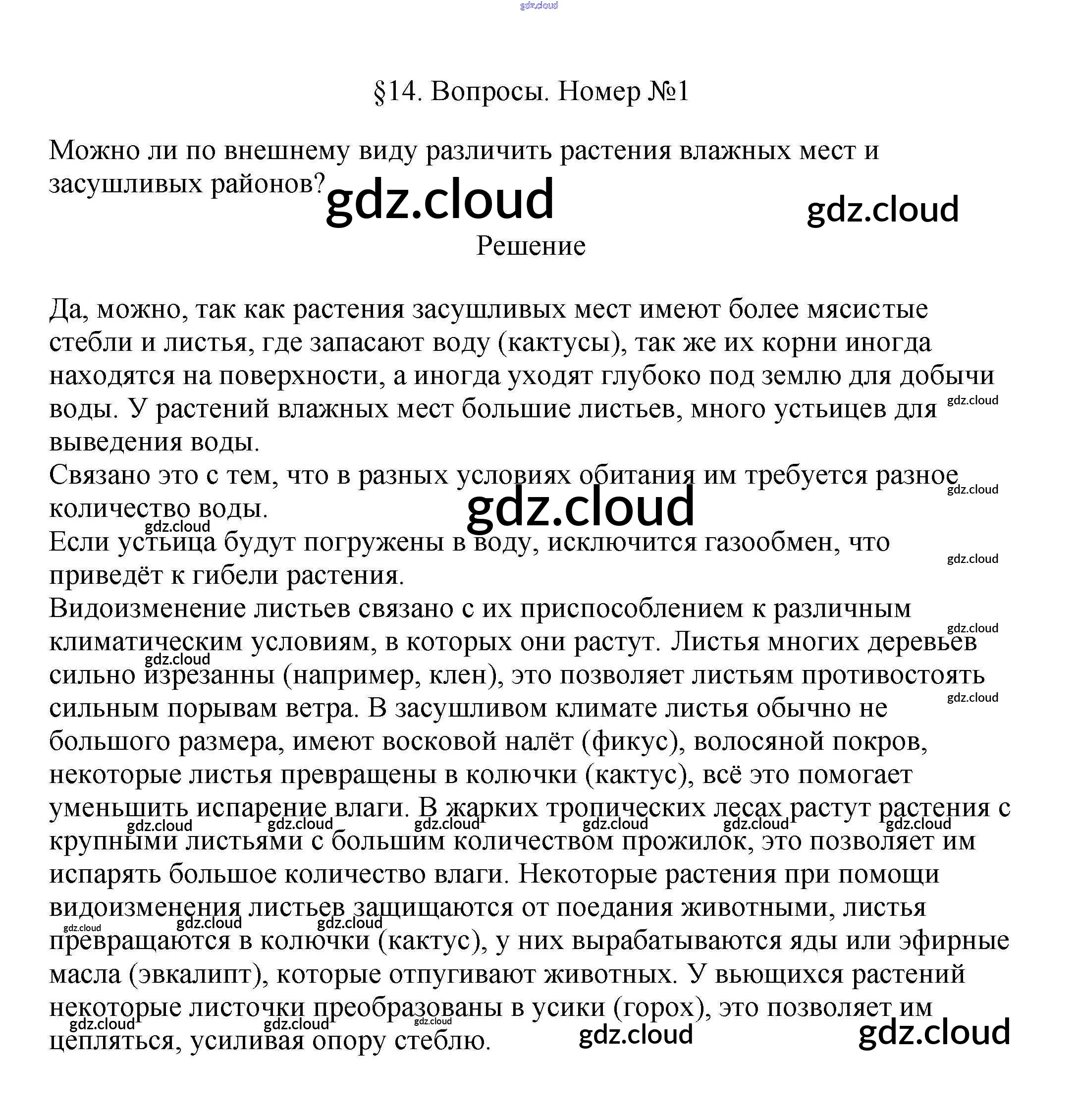 Вопросы Ответы к §14 по Биологии 6 класс Учебник Пасечник Линейный курс Дрофа