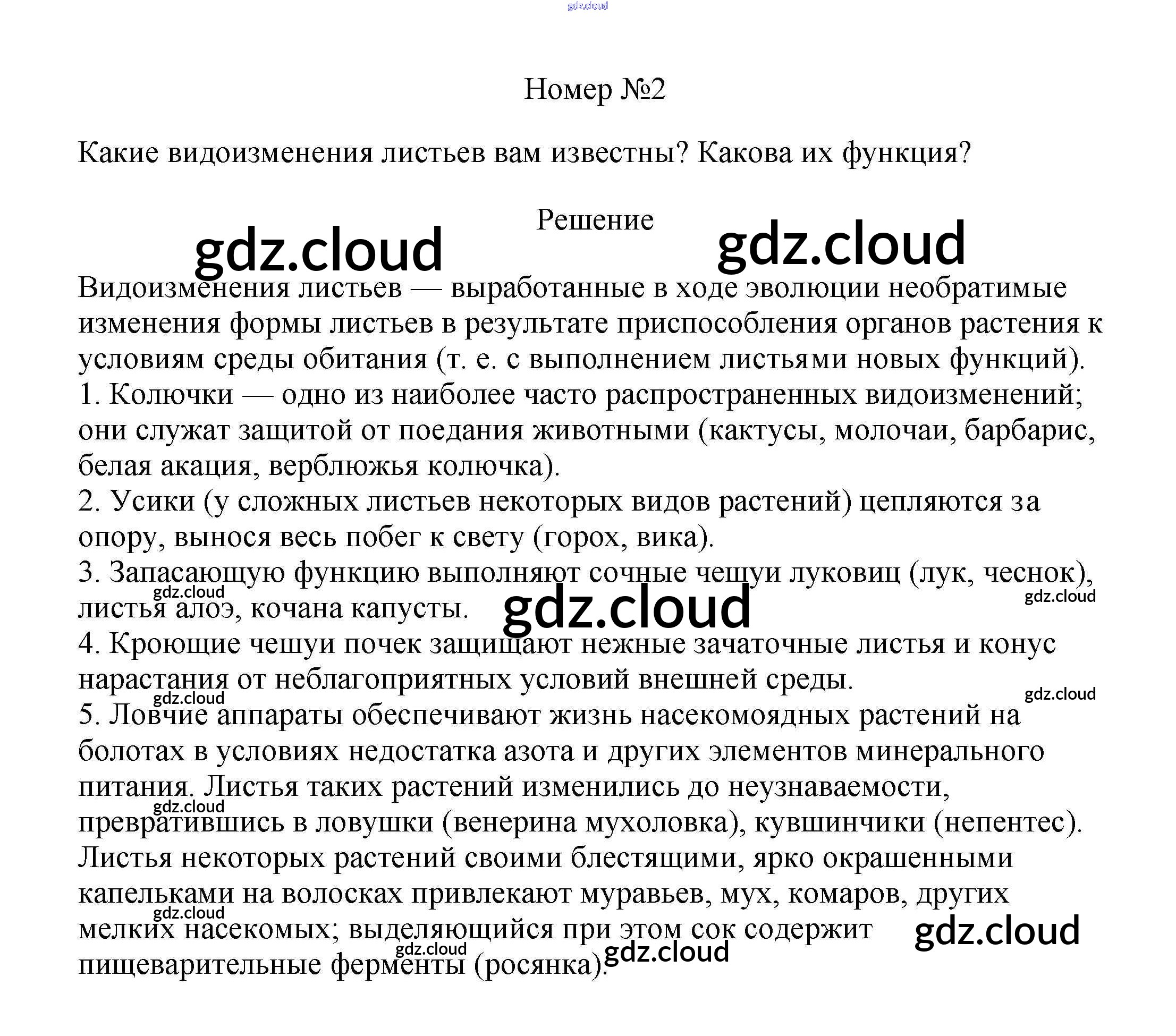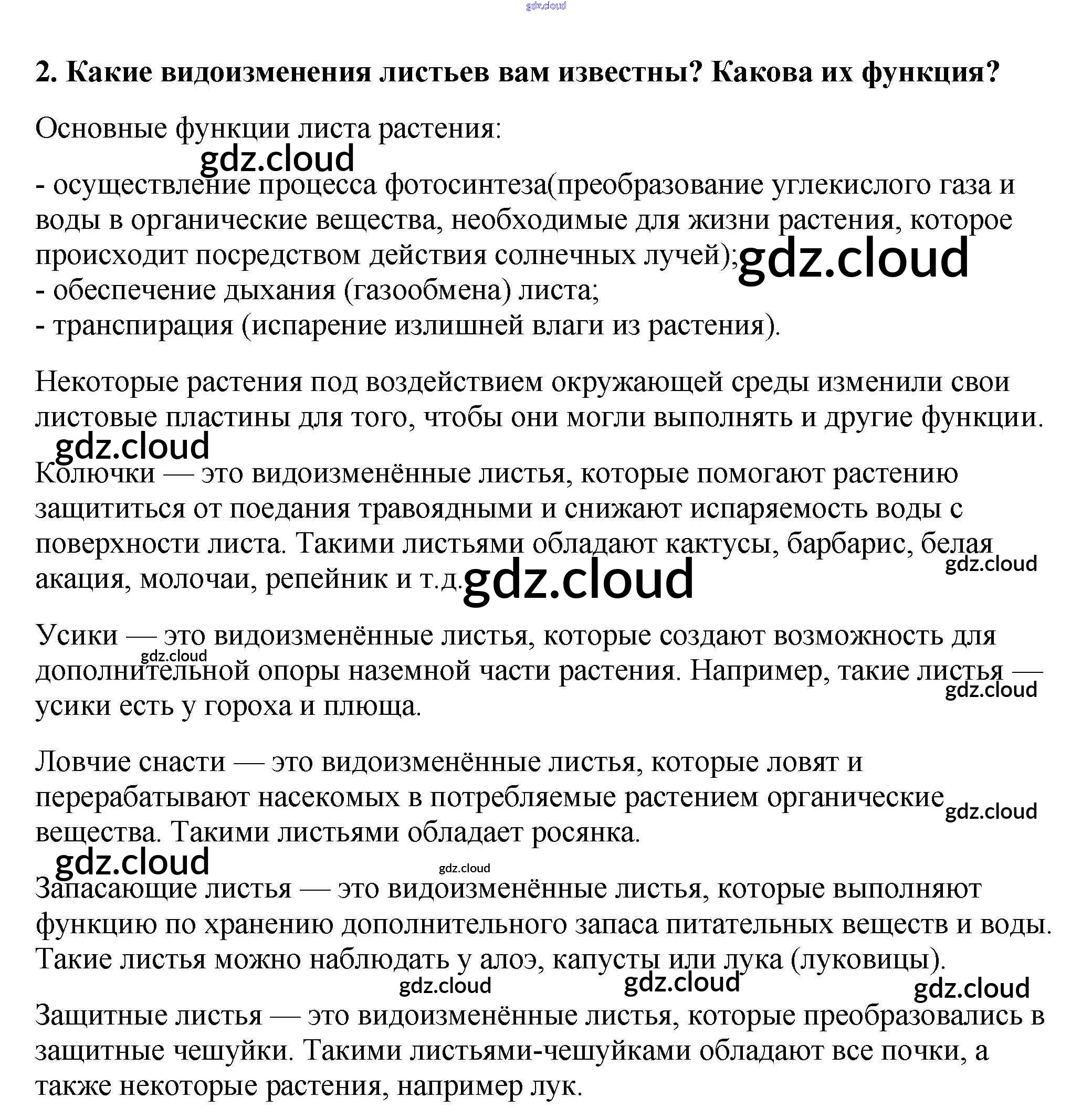Ответ на задание 2 Учебник Биология за 6 (шестой) класс Пасечник Линейный курс 2020