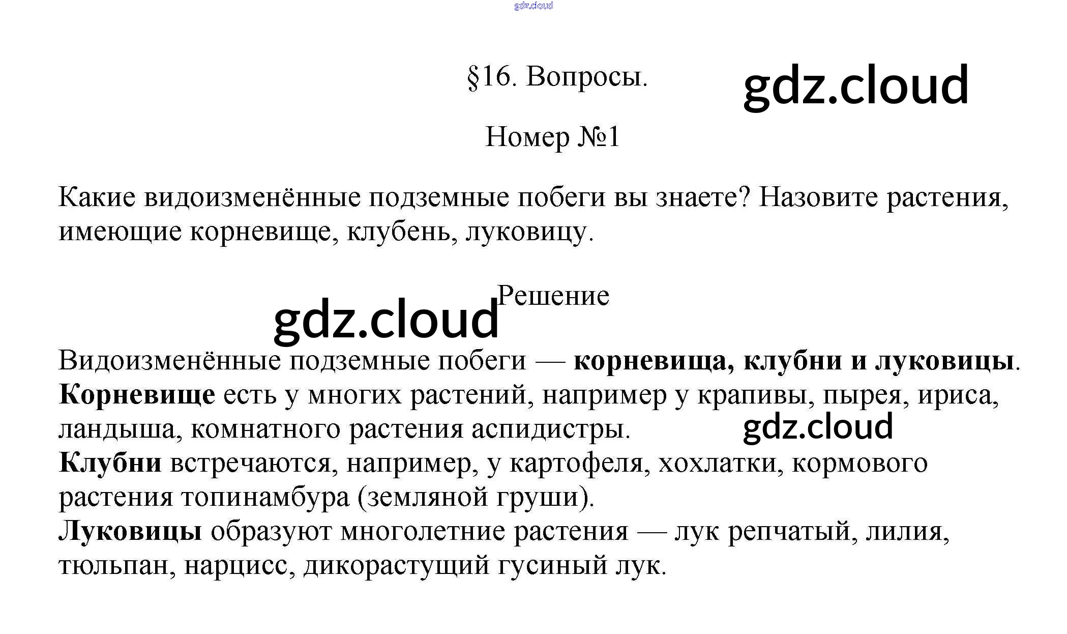 Вопросы Ответы к §16 по Биологии 6 класс Учебник Пасечник Линейный курс Дрофа