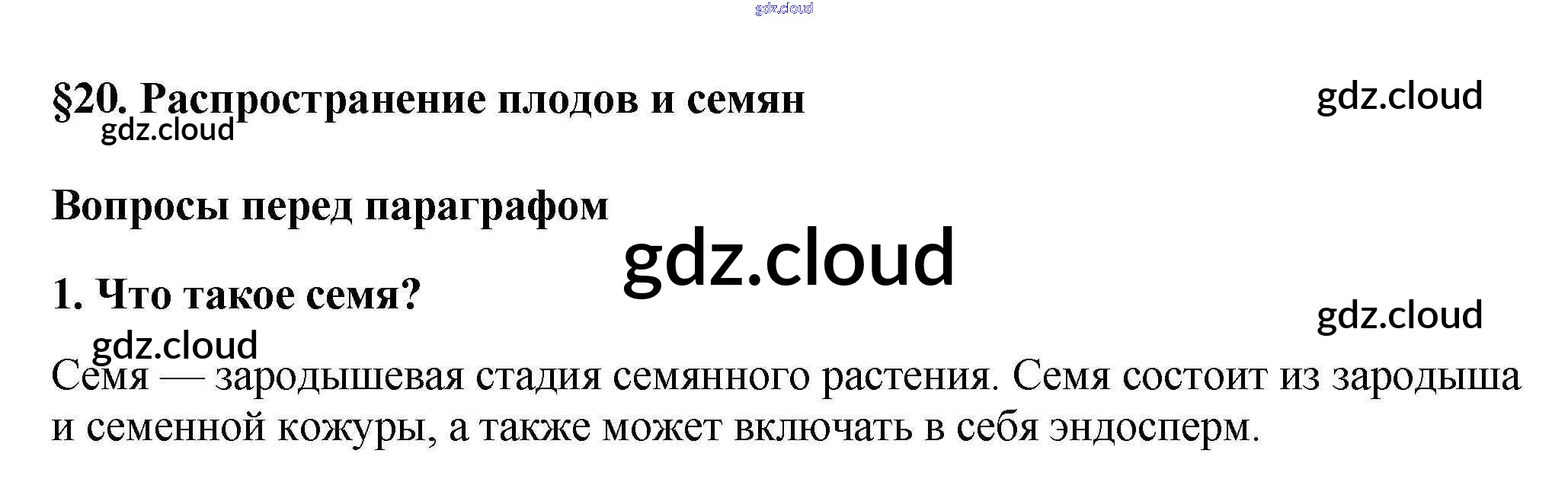 Вопросы перед параграфом Ответы к §20 по Биологии 6 класс Учебник Пасечник Линейный курс Дрофа