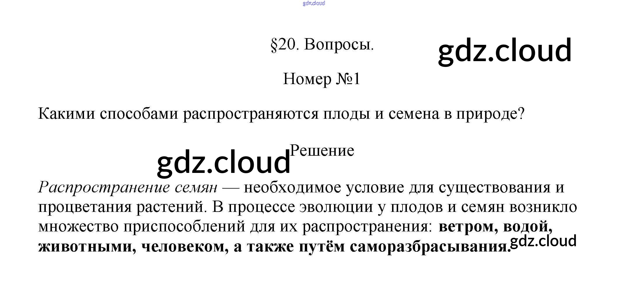 Вопросы Ответы к §20 по Биологии 6 класс Учебник Пасечник Линейный курс Дрофа