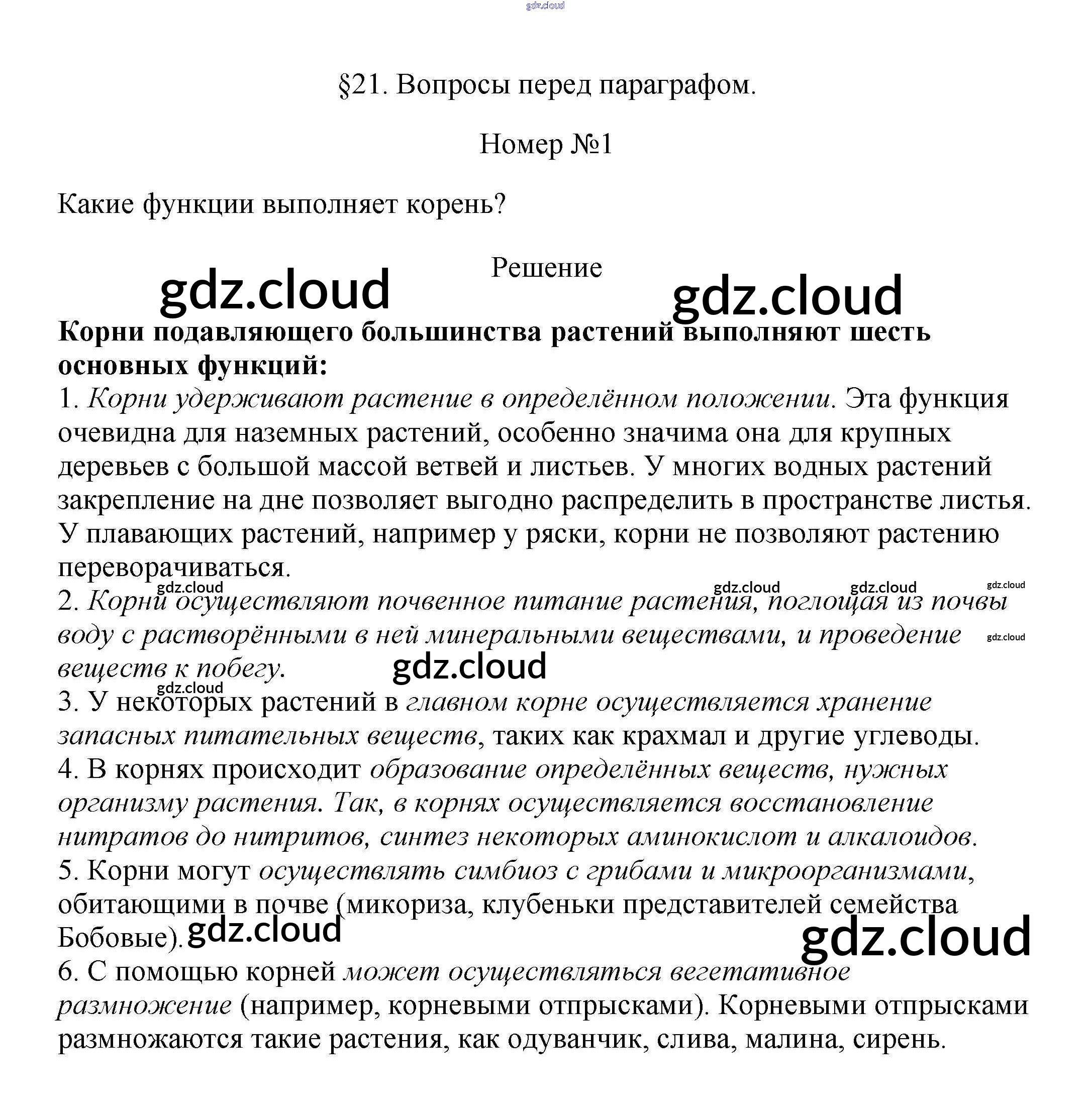 Вопросы перед параграфом Ответы к §21 по Биологии 6 класс Учебник Пасечник Линейный курс Дрофа