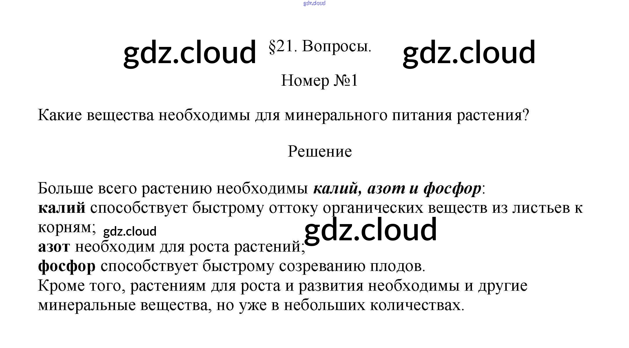 Вопросы Ответы к §21 по Биологии 6 класс Учебник Пасечник Линейный курс Дрофа