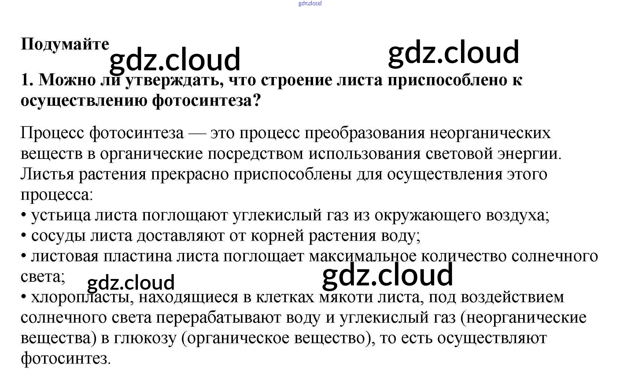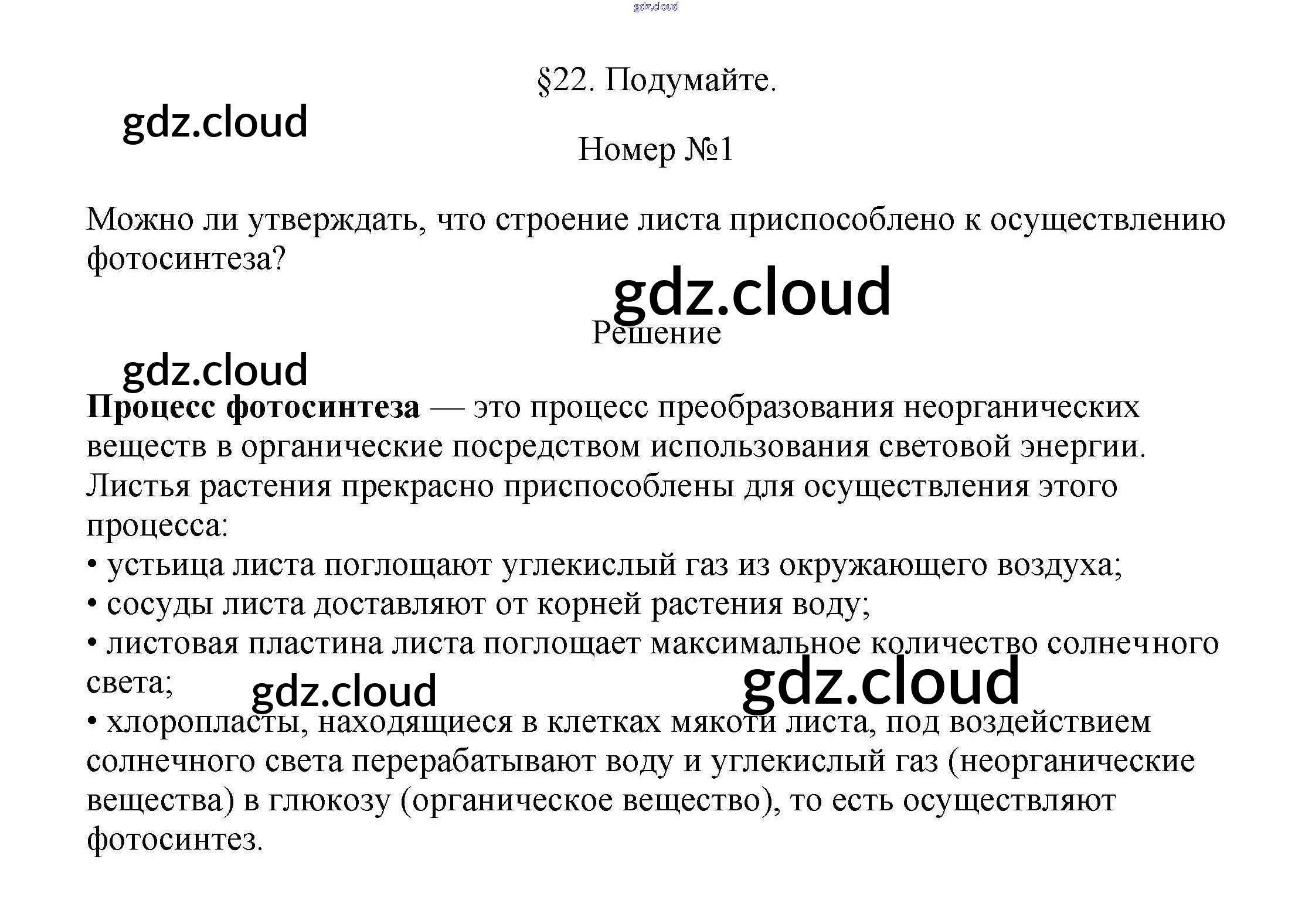 Подумайте Ответы к §22 по Биологии 6 класс Учебник Пасечник Линейный курс Дрофа