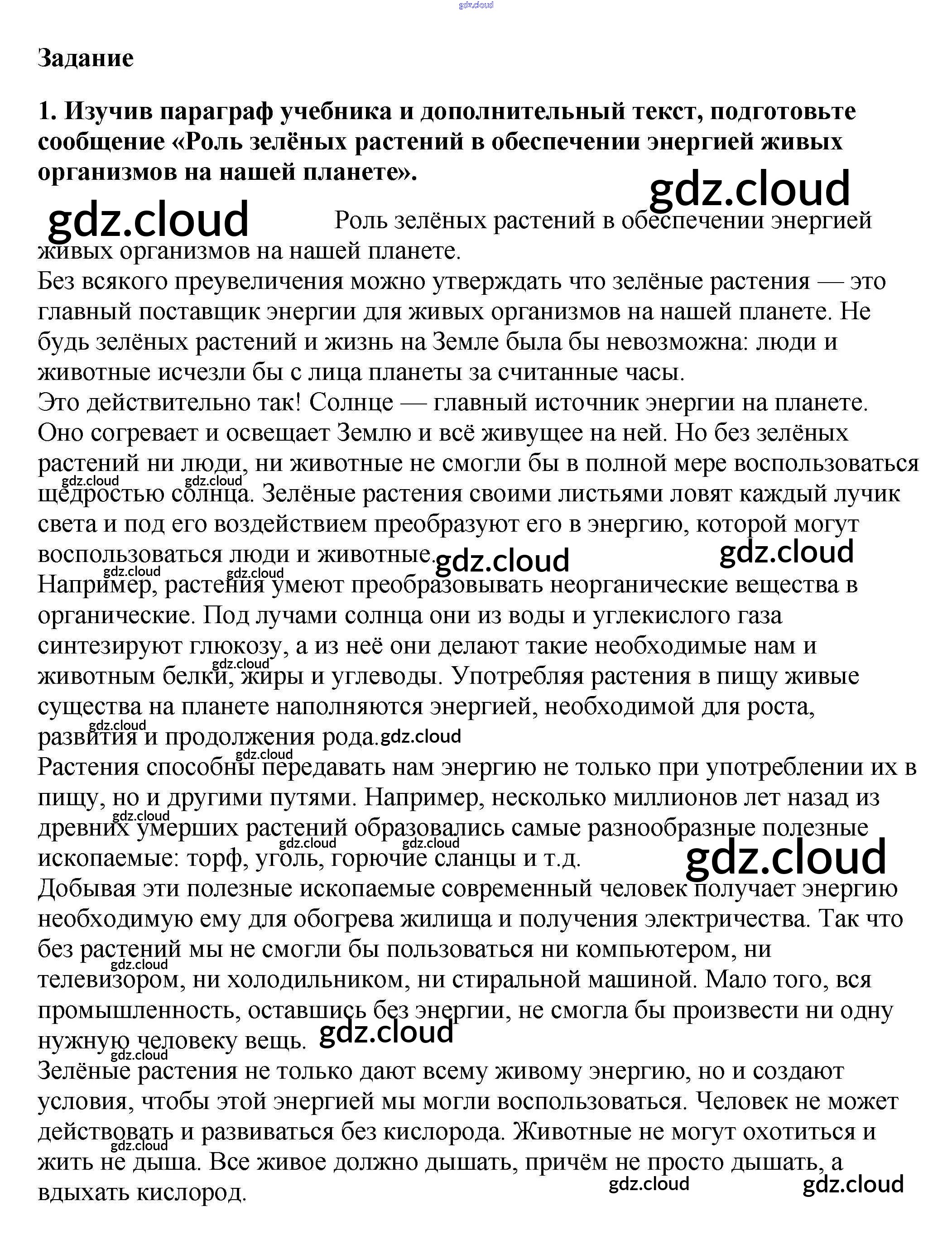Ответ на задание 1 Учебник Биология за 6 (шестой) класс Пасечник Линейный курс 2020