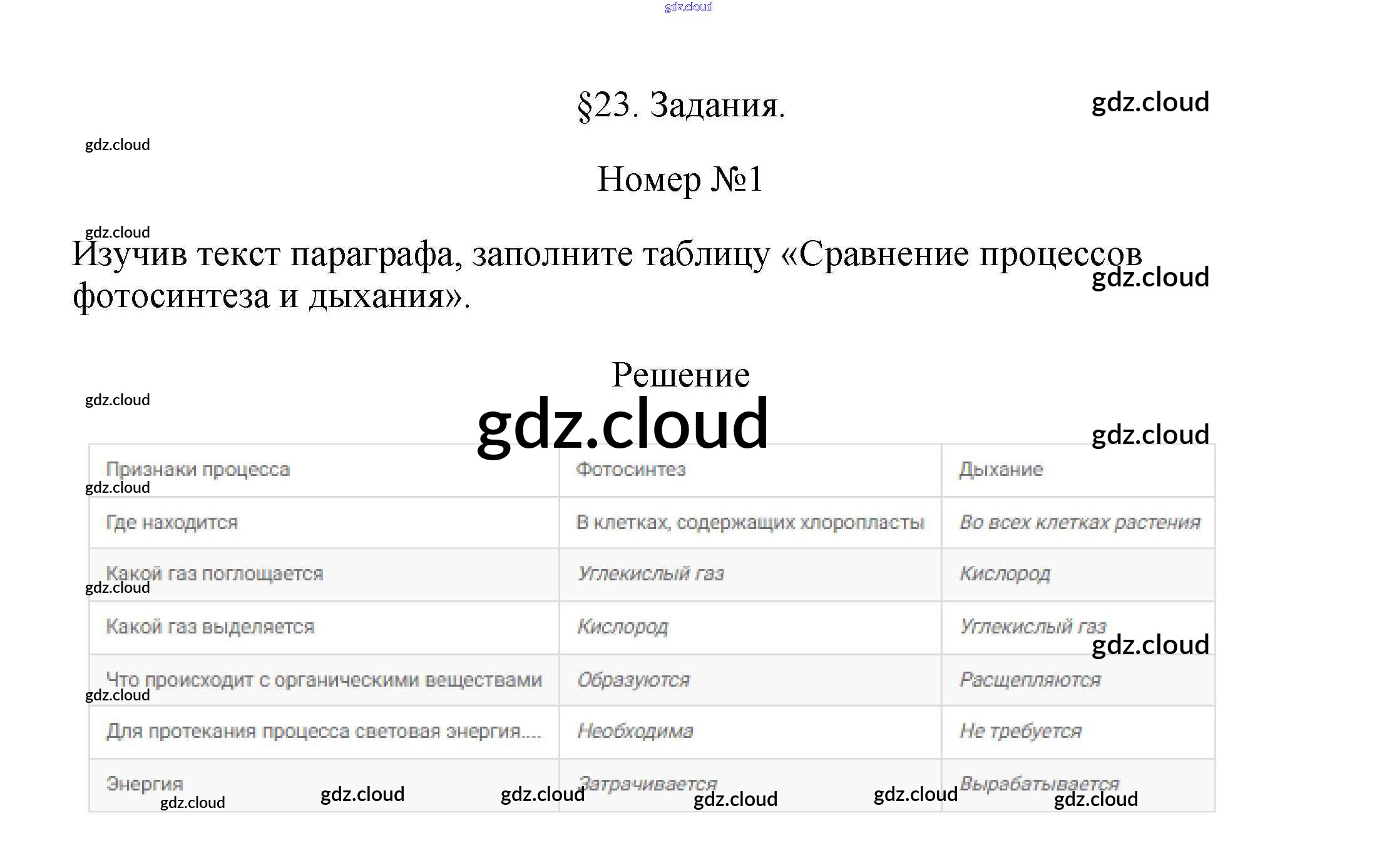Задания Ответы к §23 по Биологии 6 класс Учебник Пасечник Линейный курс Дрофа