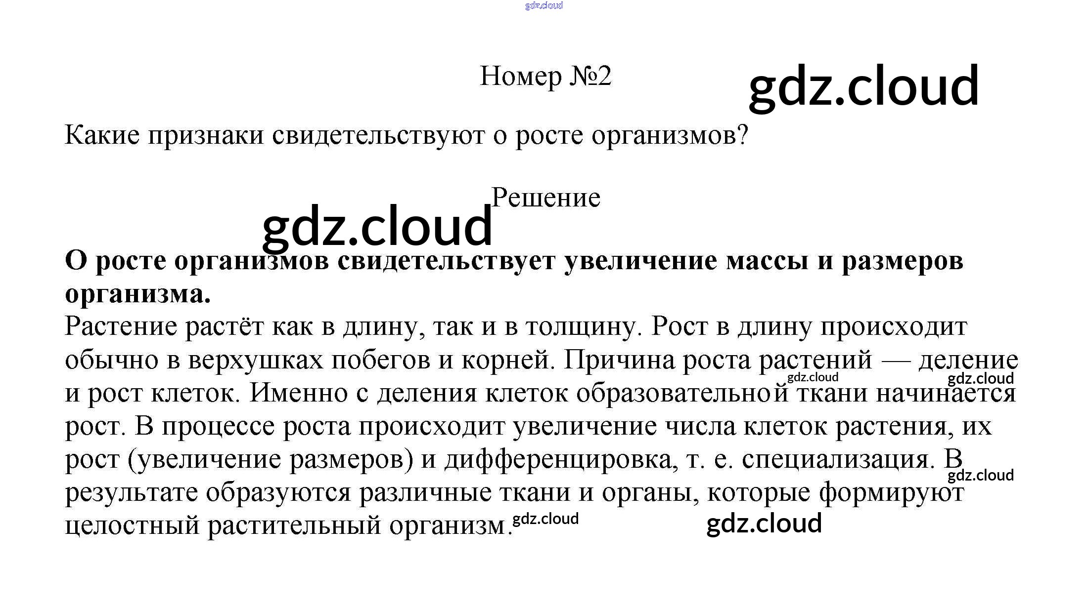 Ответ на задание 2 Учебник Биология за 6 (шестой) класс Пасечник Линейный курс 2020