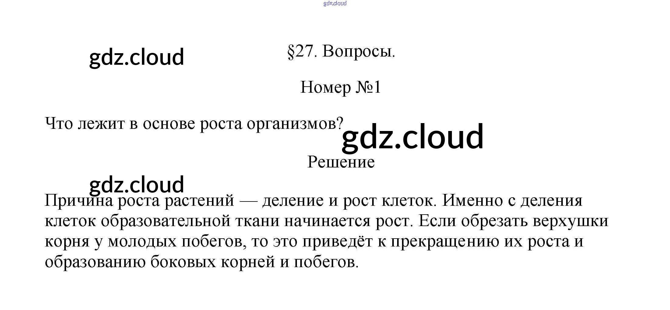Вопросы Ответы к §27 по Биологии 6 класс Учебник Пасечник Линейный курс Дрофа