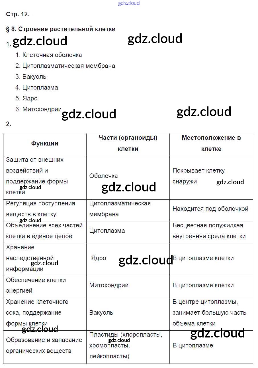 Ответ на задание 12 Рабочая тетрадь Биология за 6 (шестой) класс Исаева, Романова Инновационная школа 2017 ФГОС онлайн и без номера телефона.